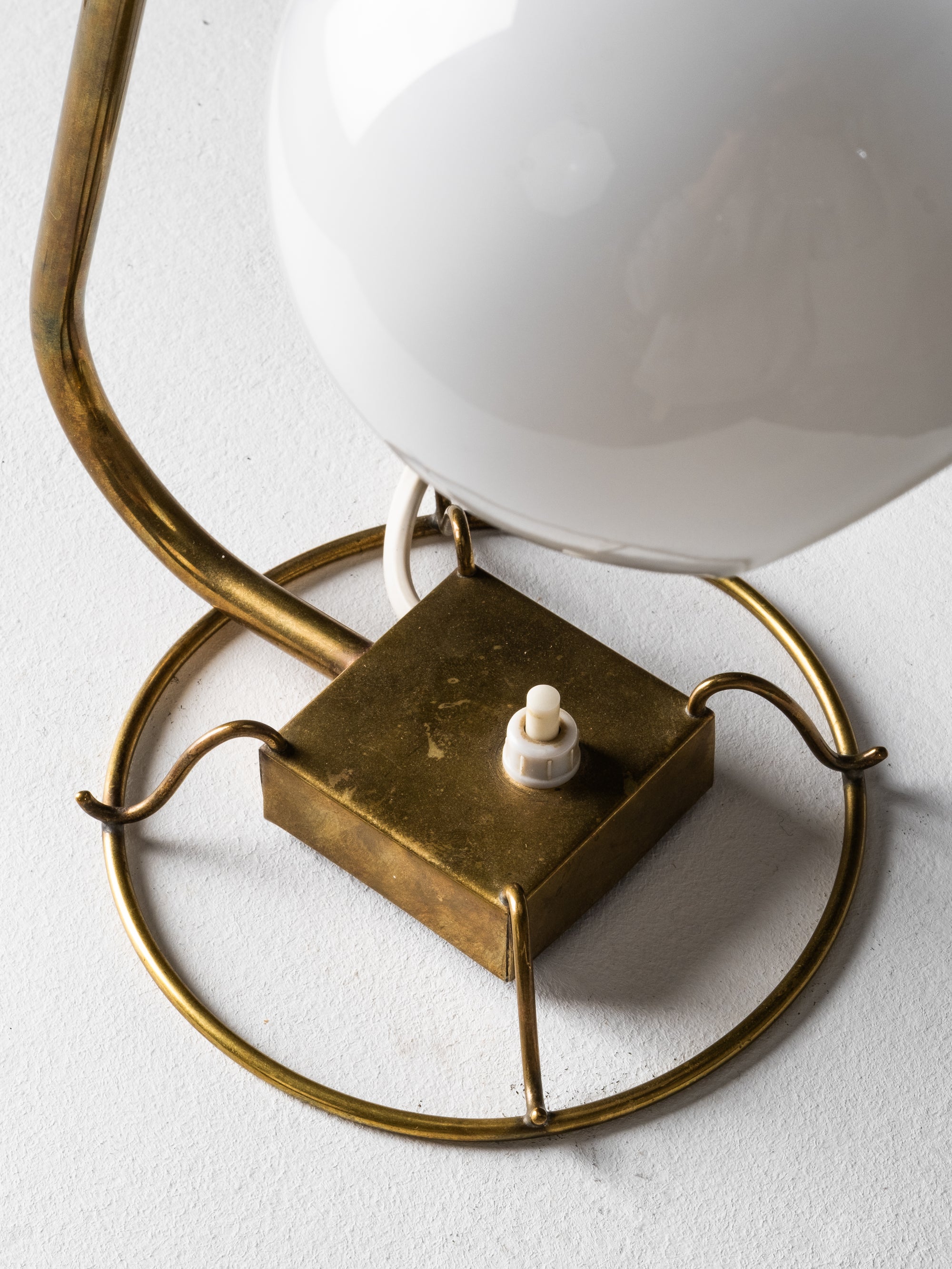 Model 60582 Brass and Opaline Glass Table Lamp by Idman, Finland, 1950s