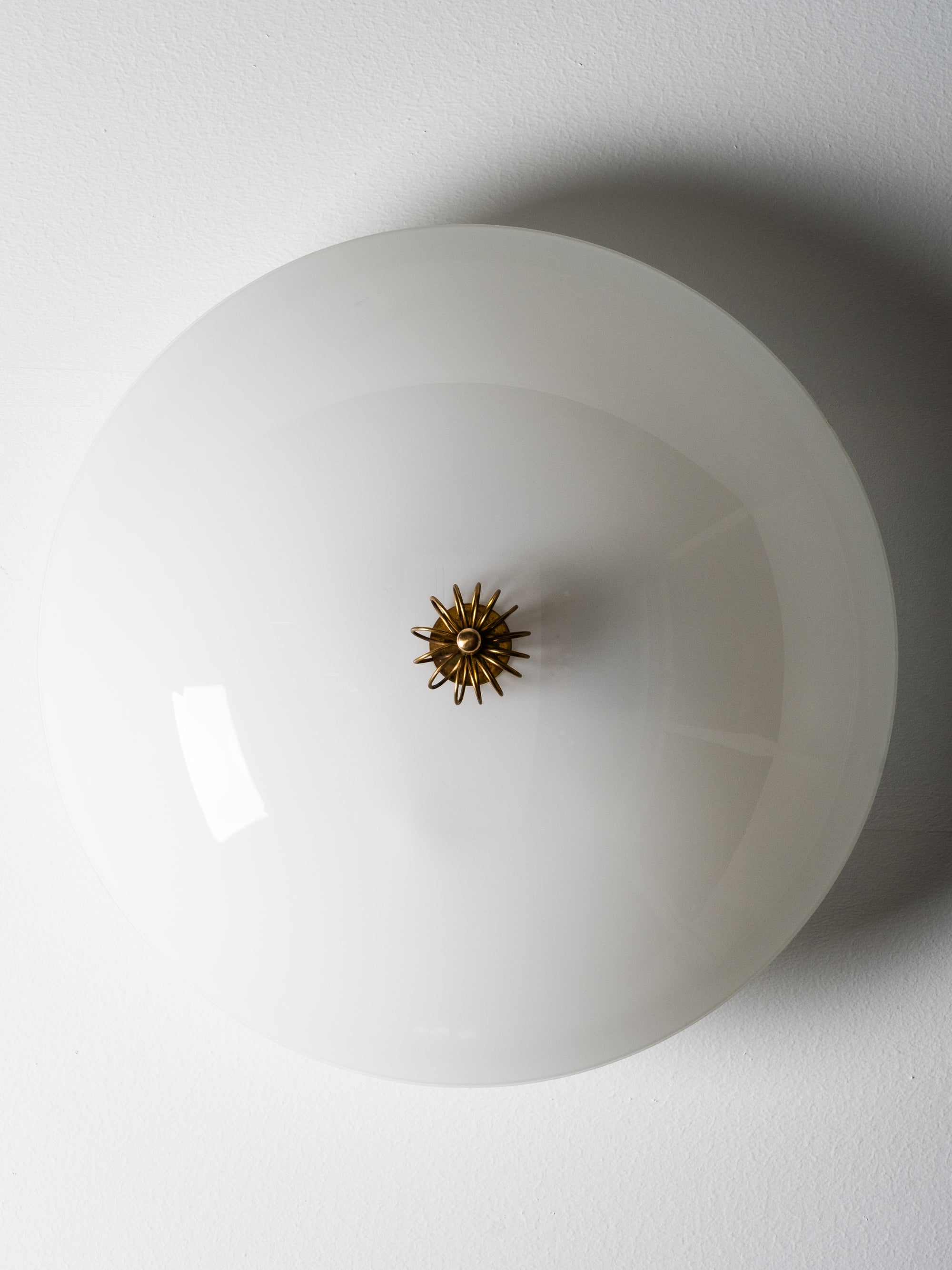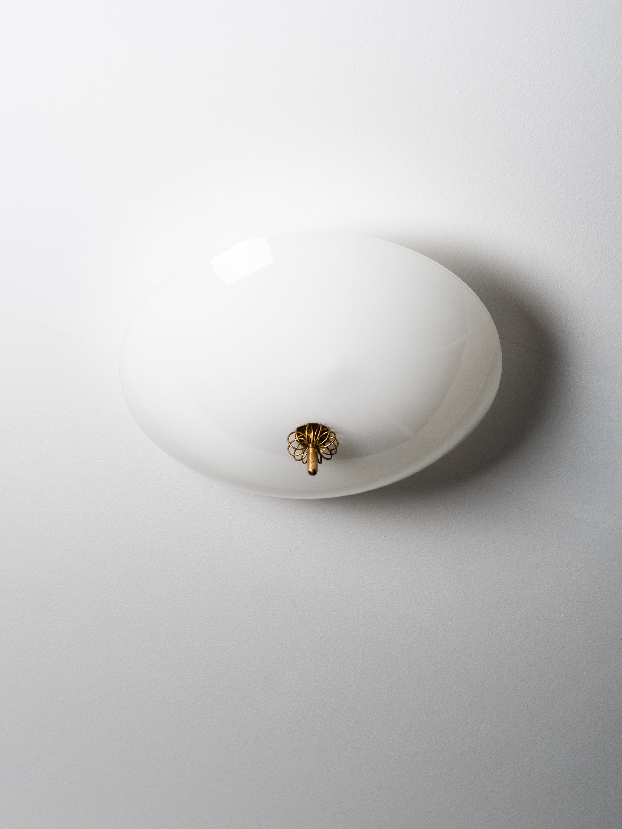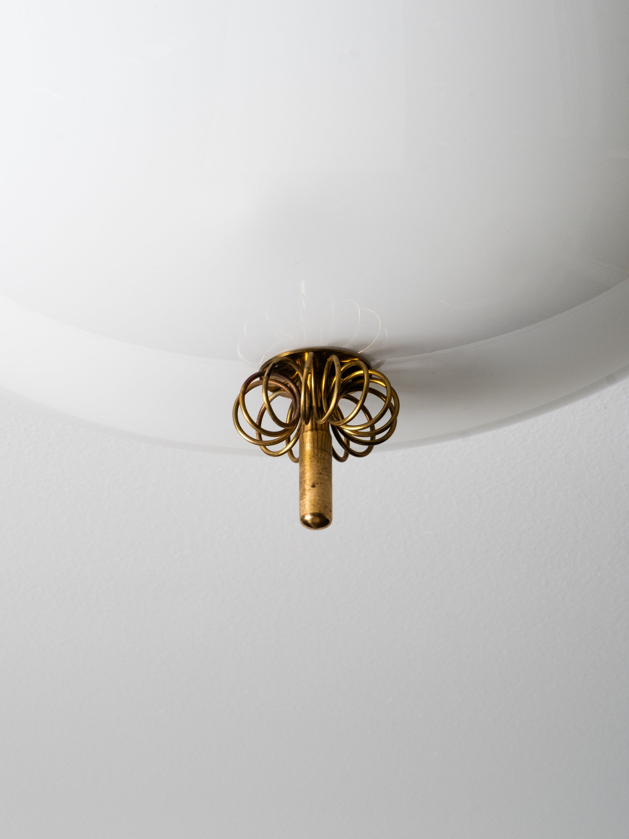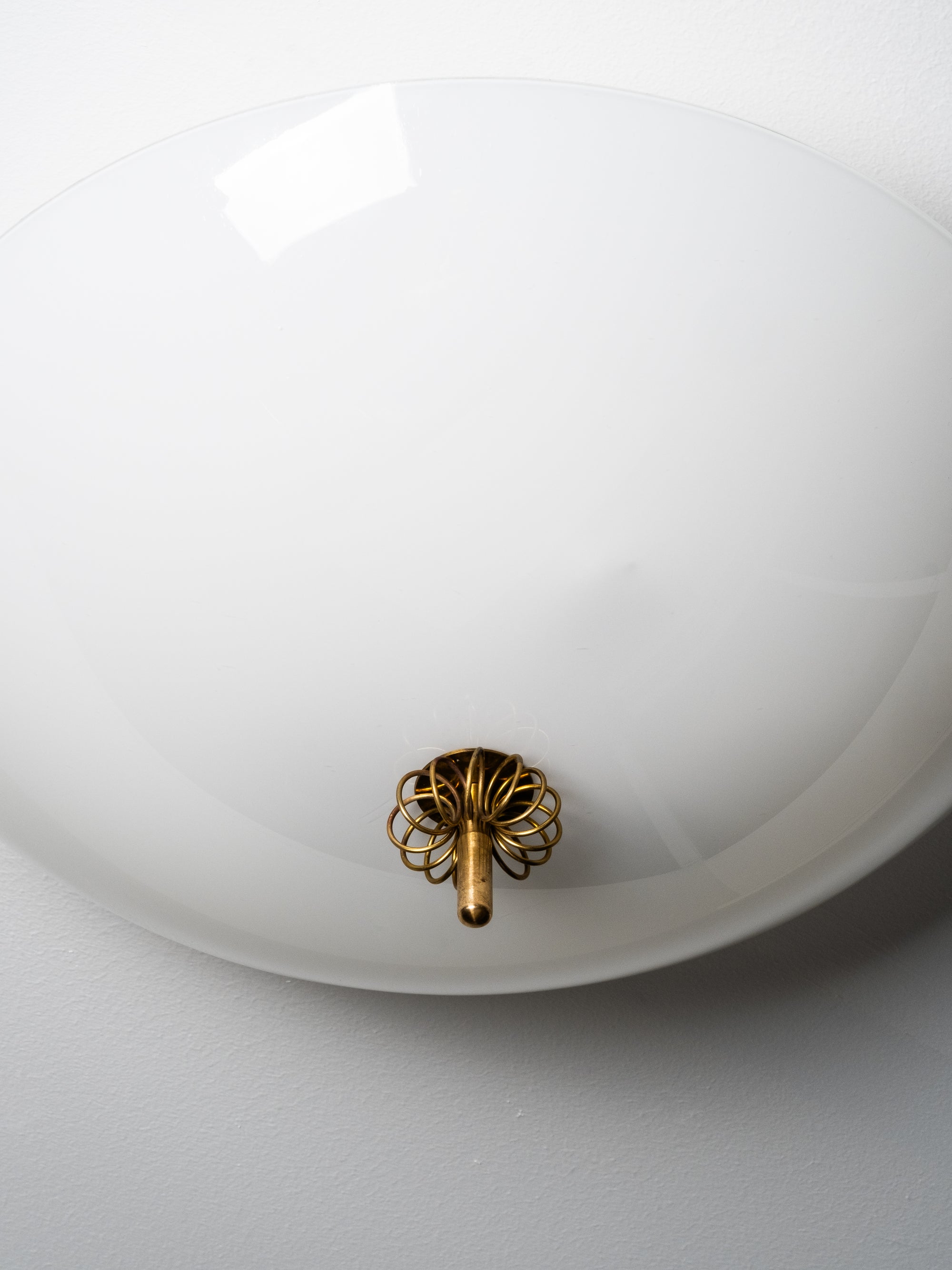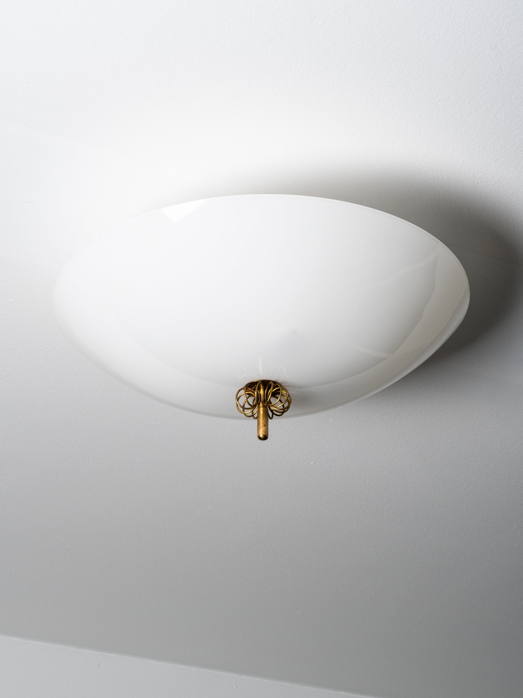 Model 2093 Opaline Glass and Brass Flush Mount by Paavo Tynell, Idman, Finland