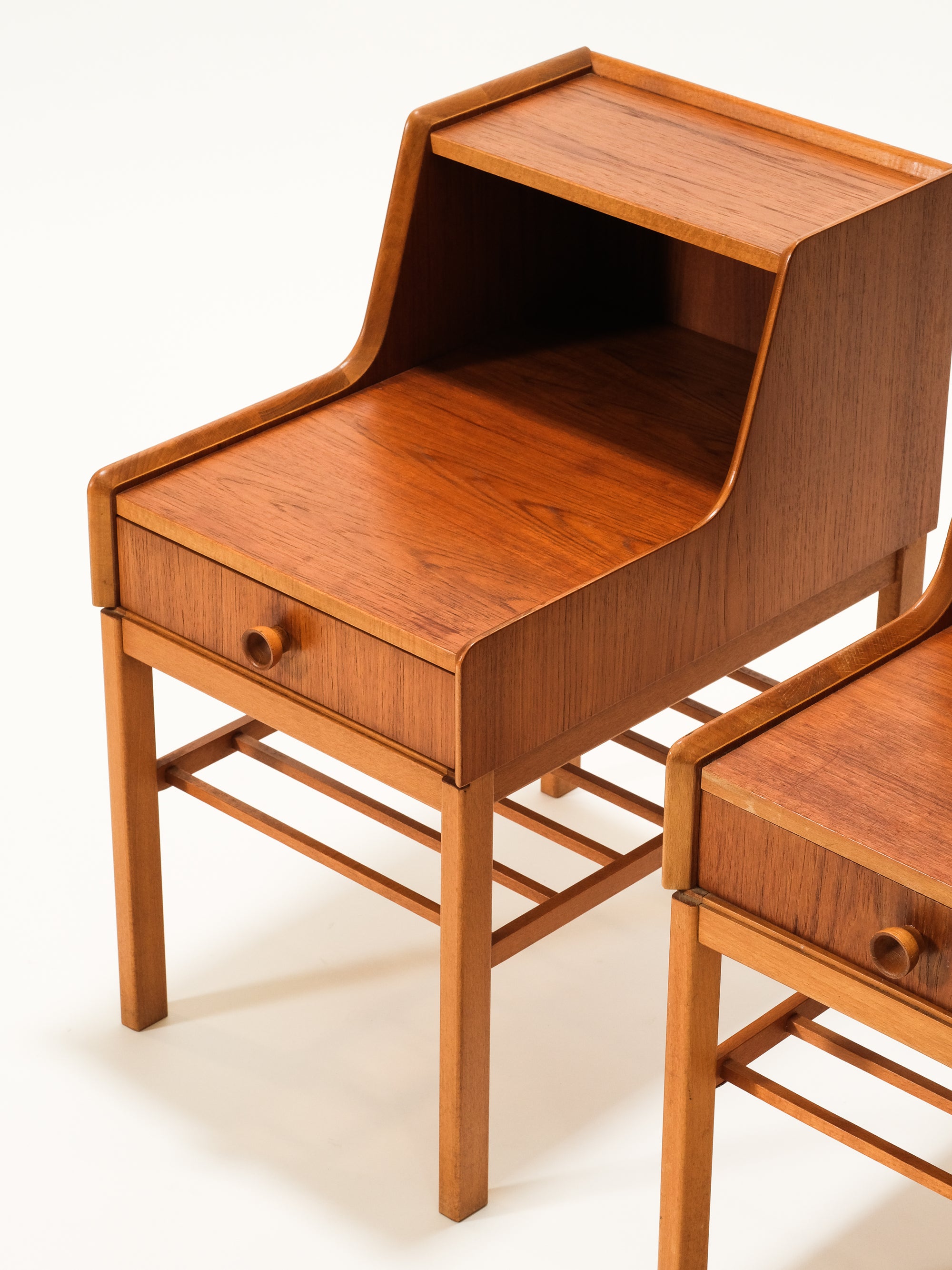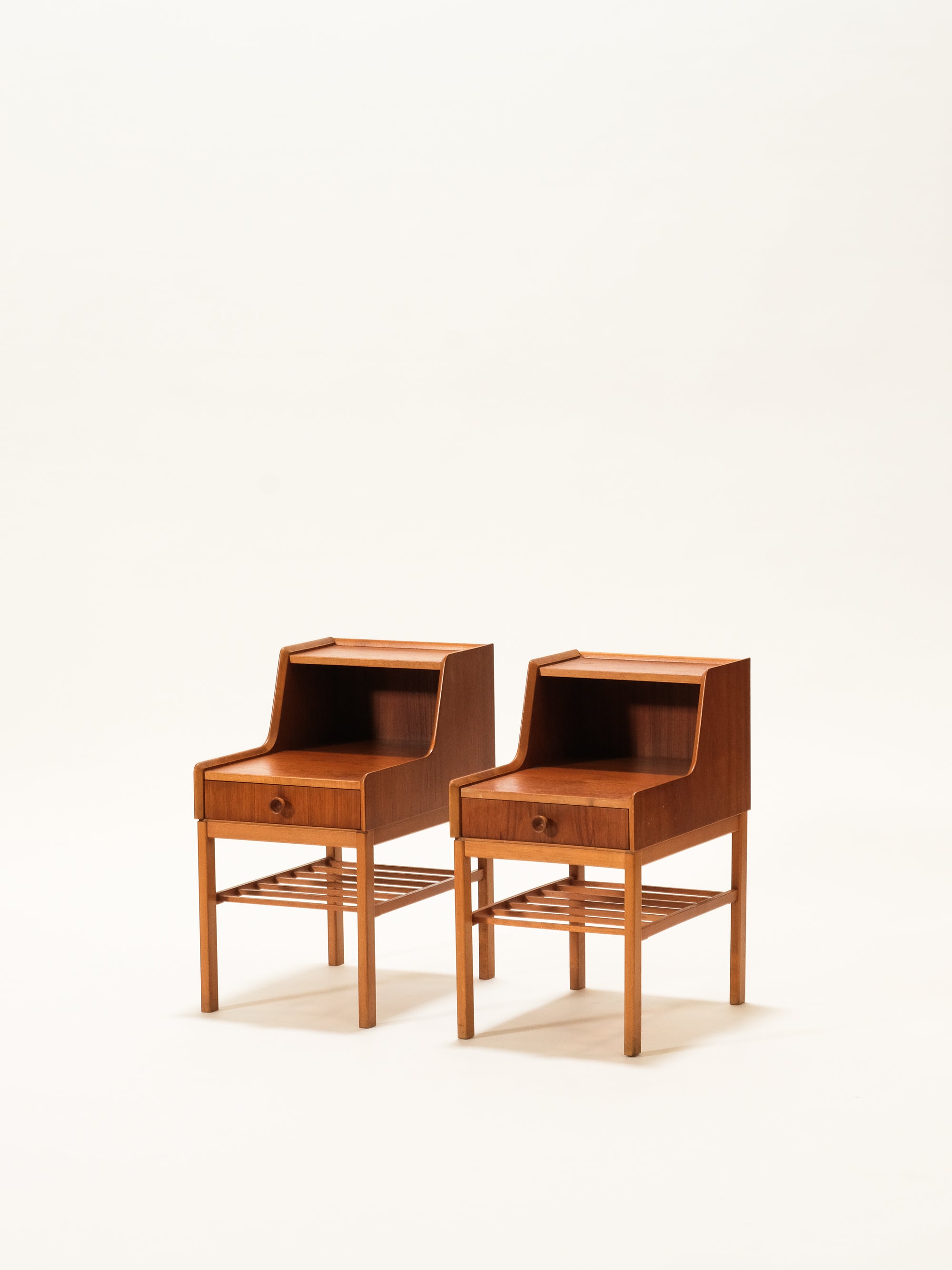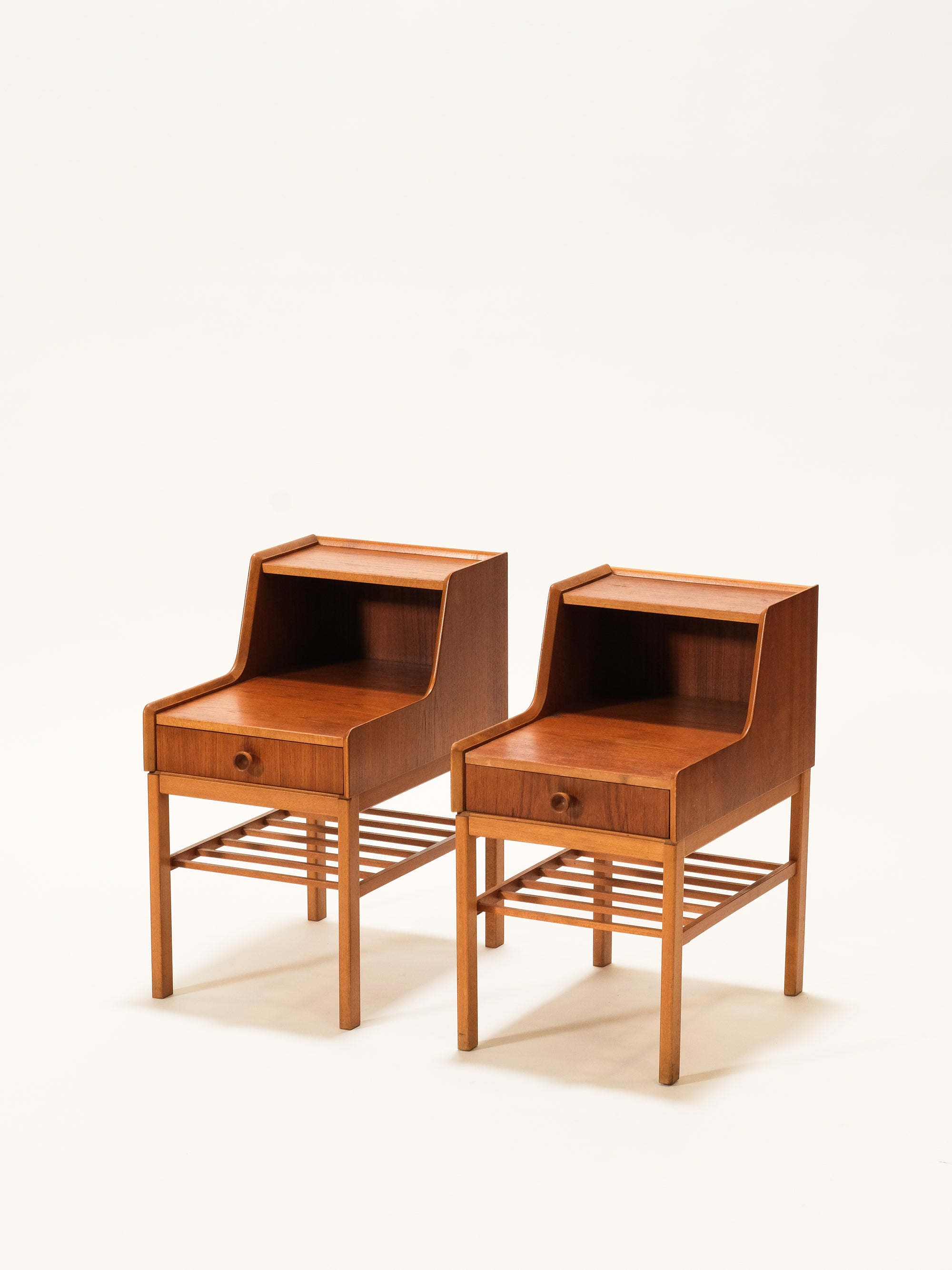 Swedish Mid-Century Teak & Oak Bedside Tables, 1960s, Set of 2