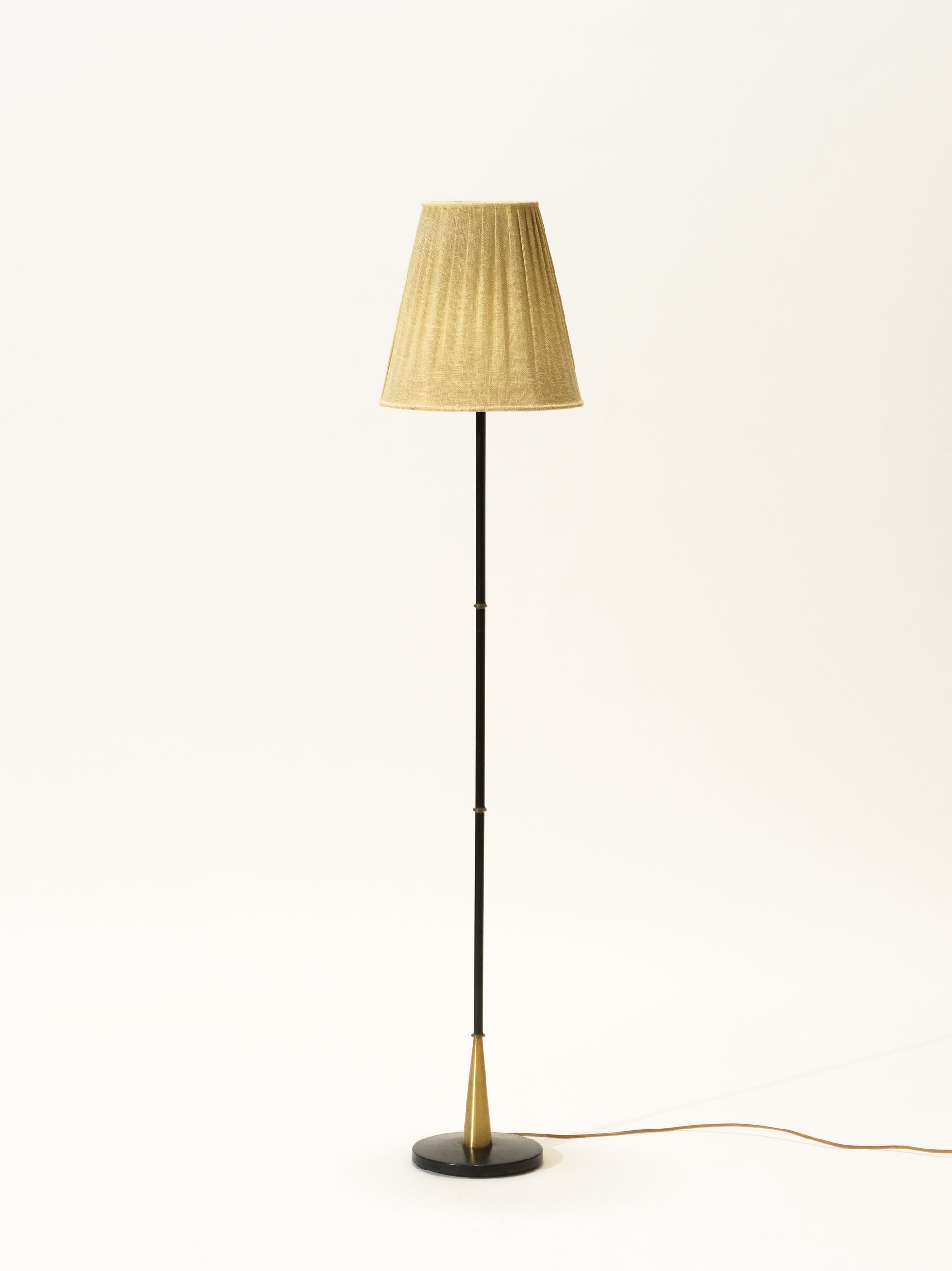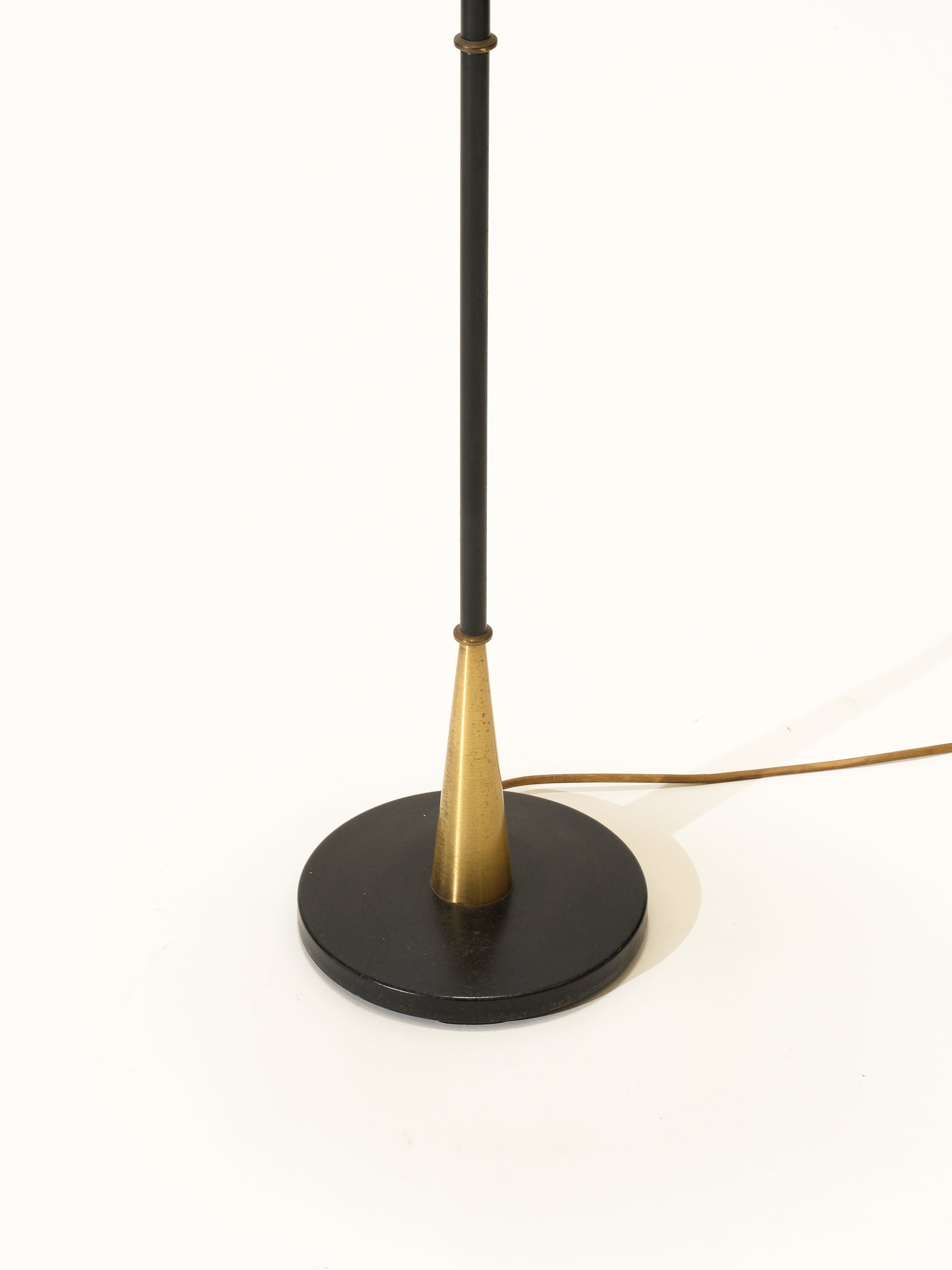 Scandinavian Black Iron and Brass Floor Lamp, 1950s