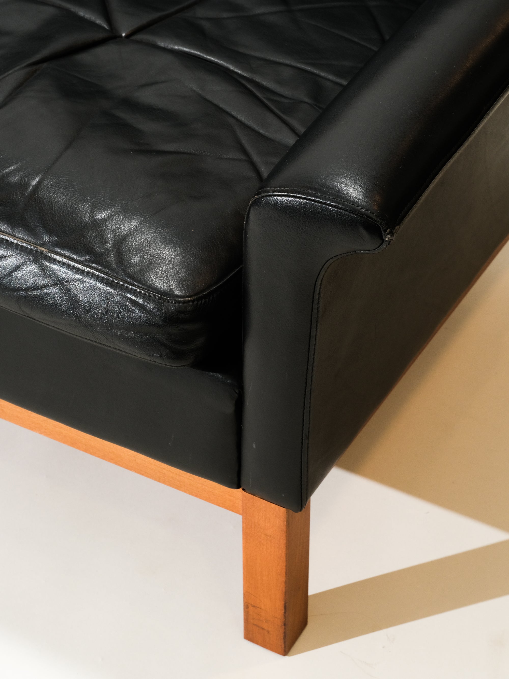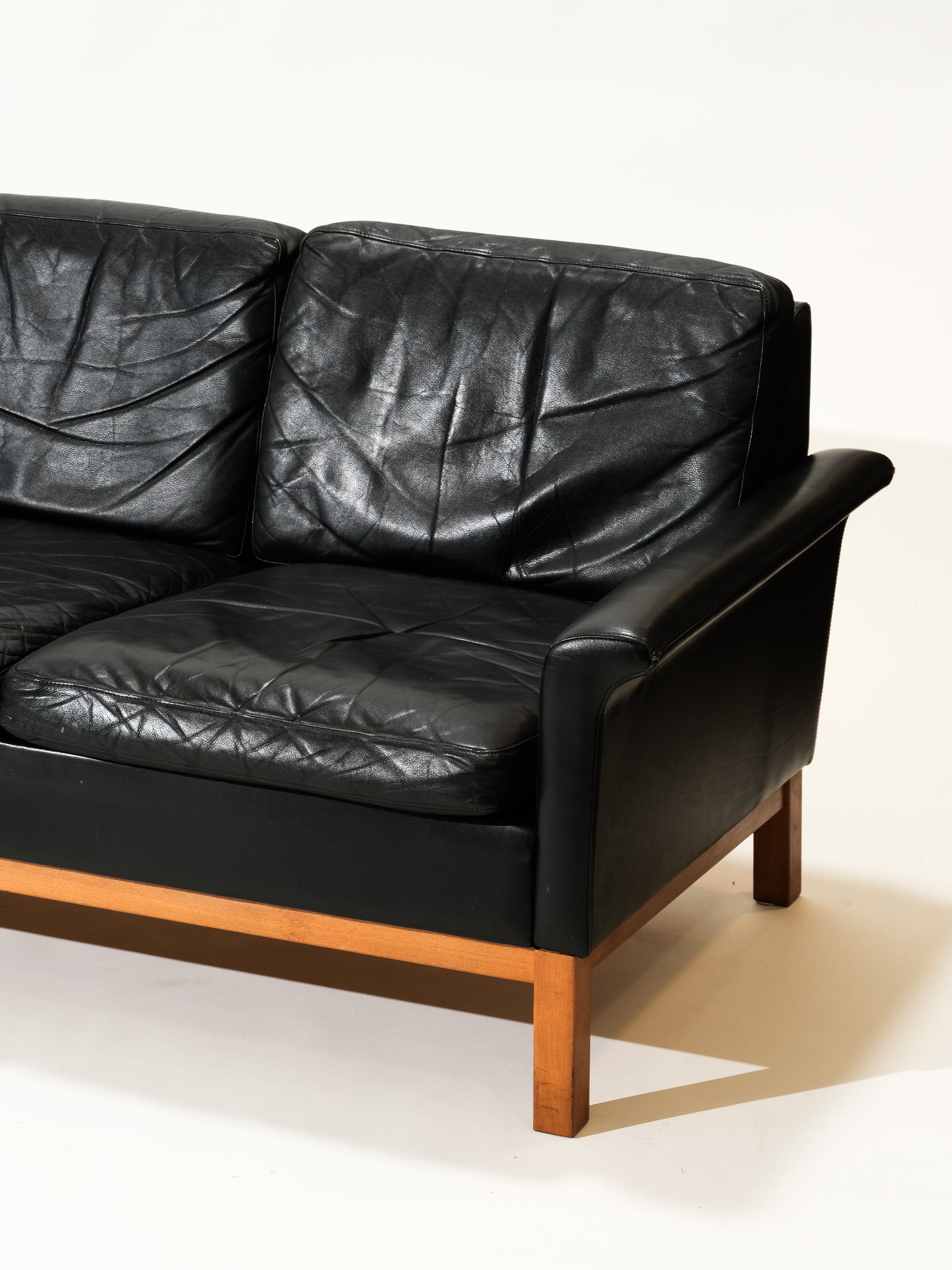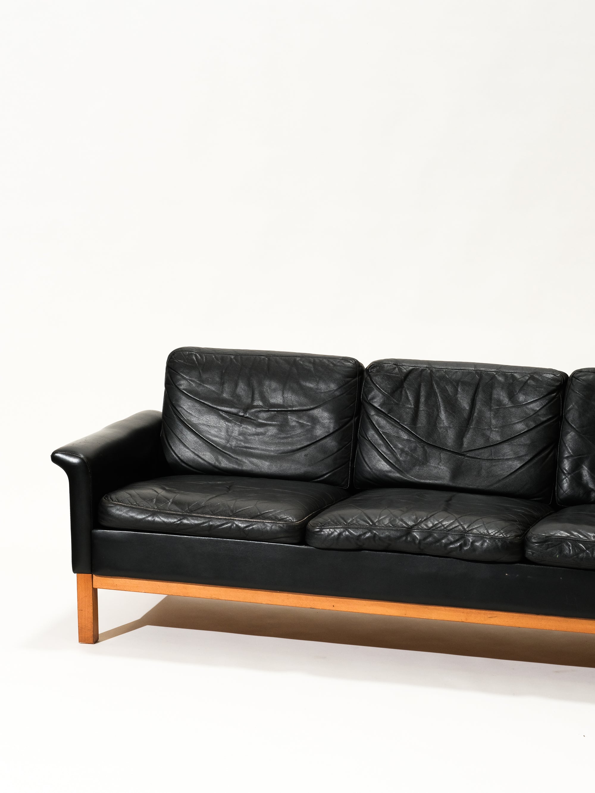Swedish Black Leather 3-Seater Sofa, 1960s
