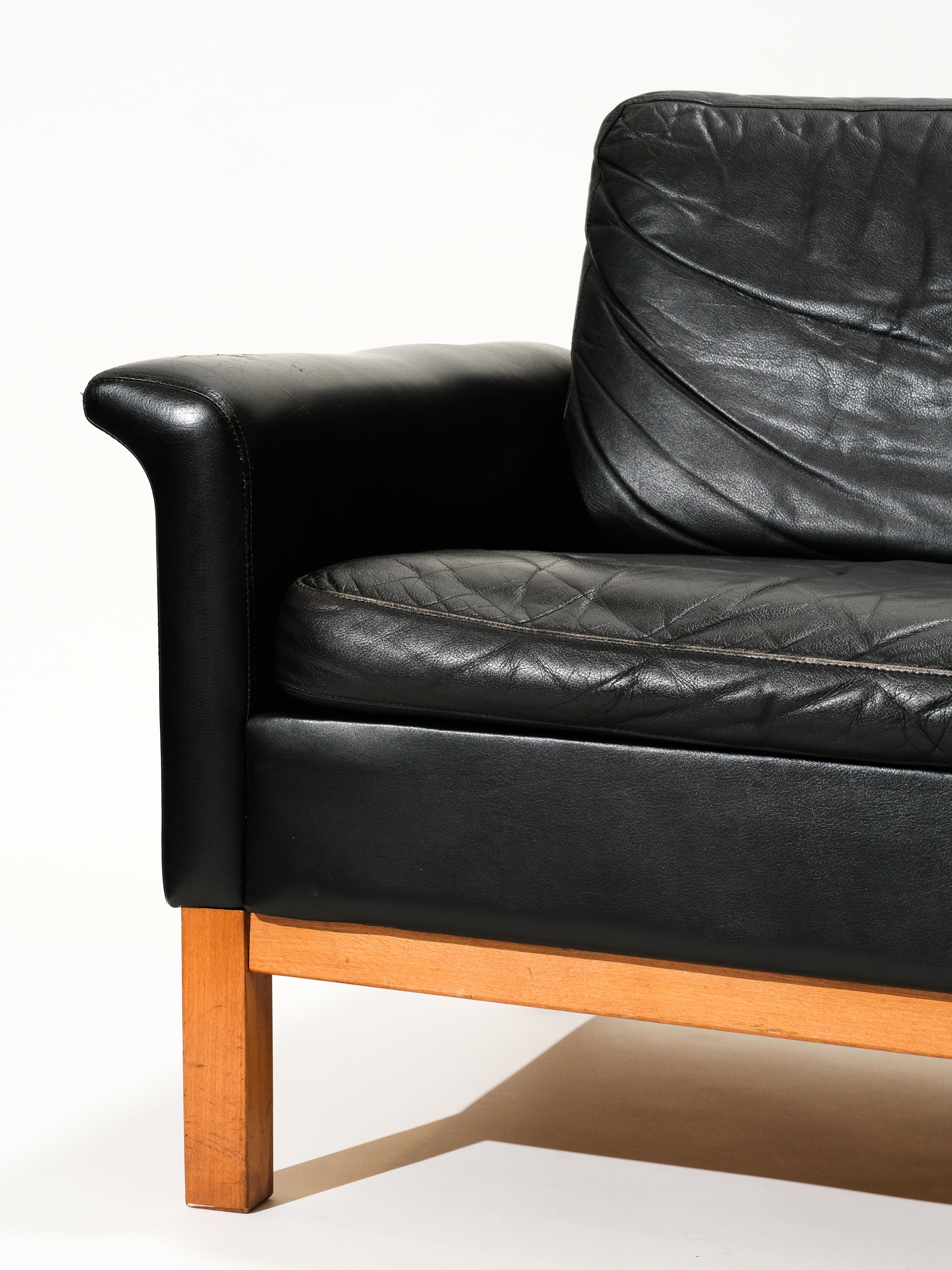 1960s Black Leather 2-Seater Sofa by Peem Oy, Finland