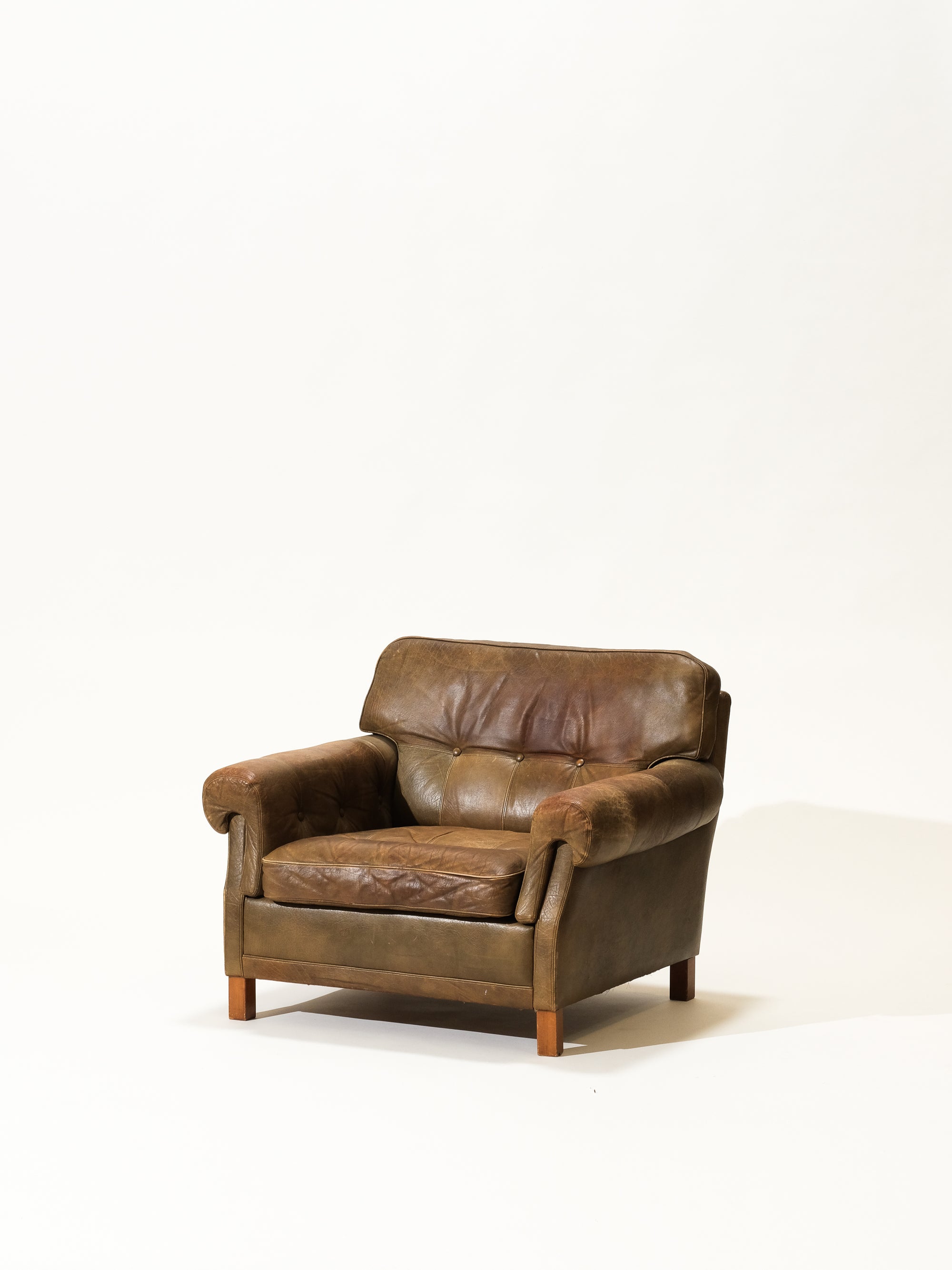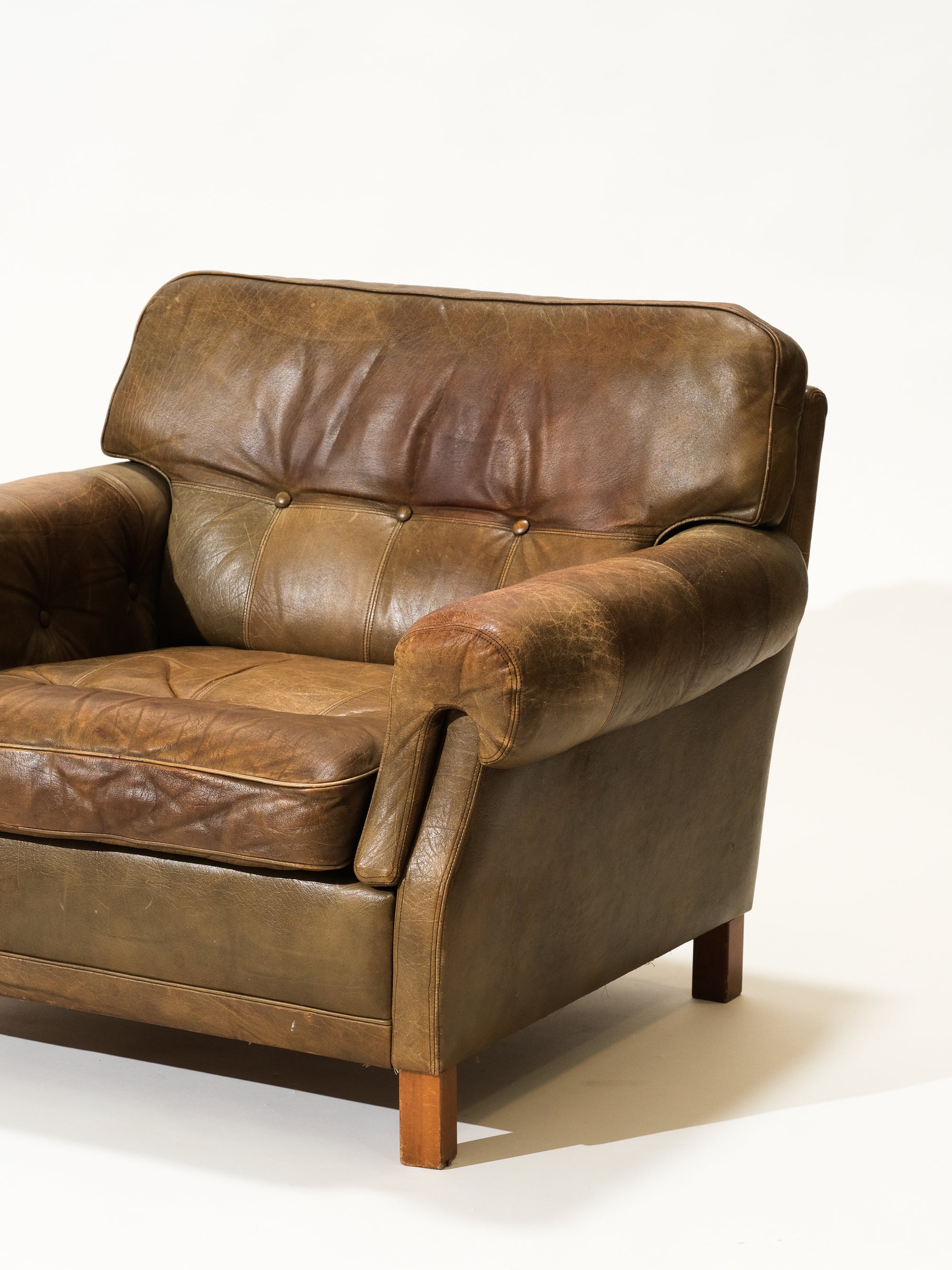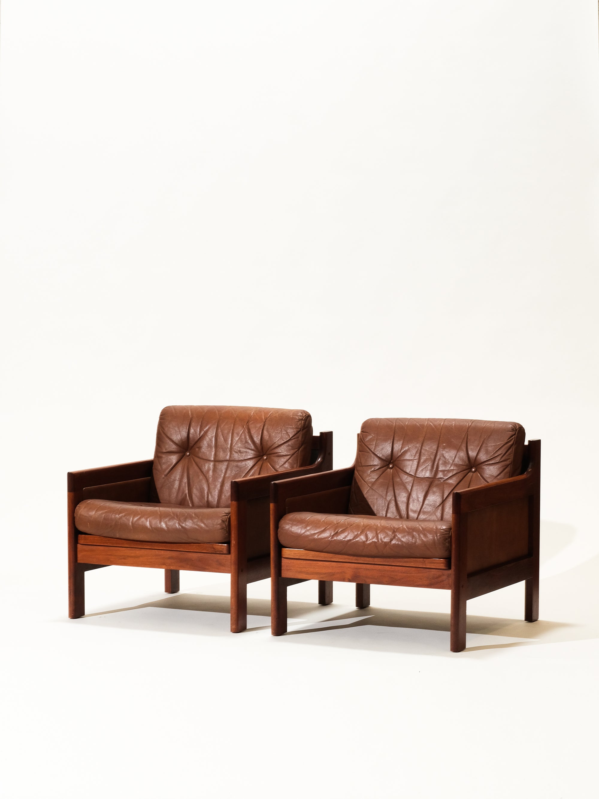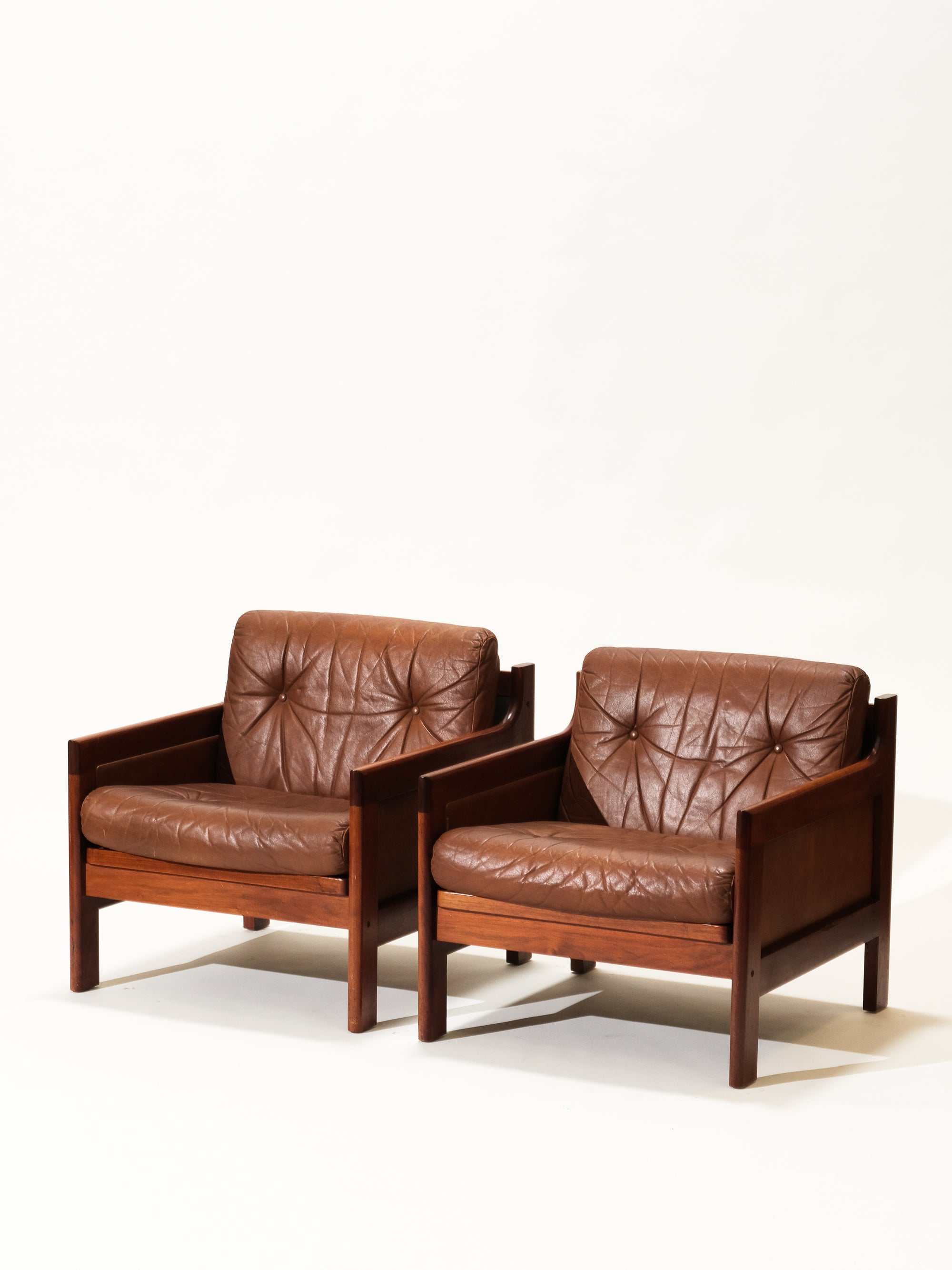 Pair of Leather Armchairs by Karl-Erik Ekselius for JOC Möbel AB, Sweden