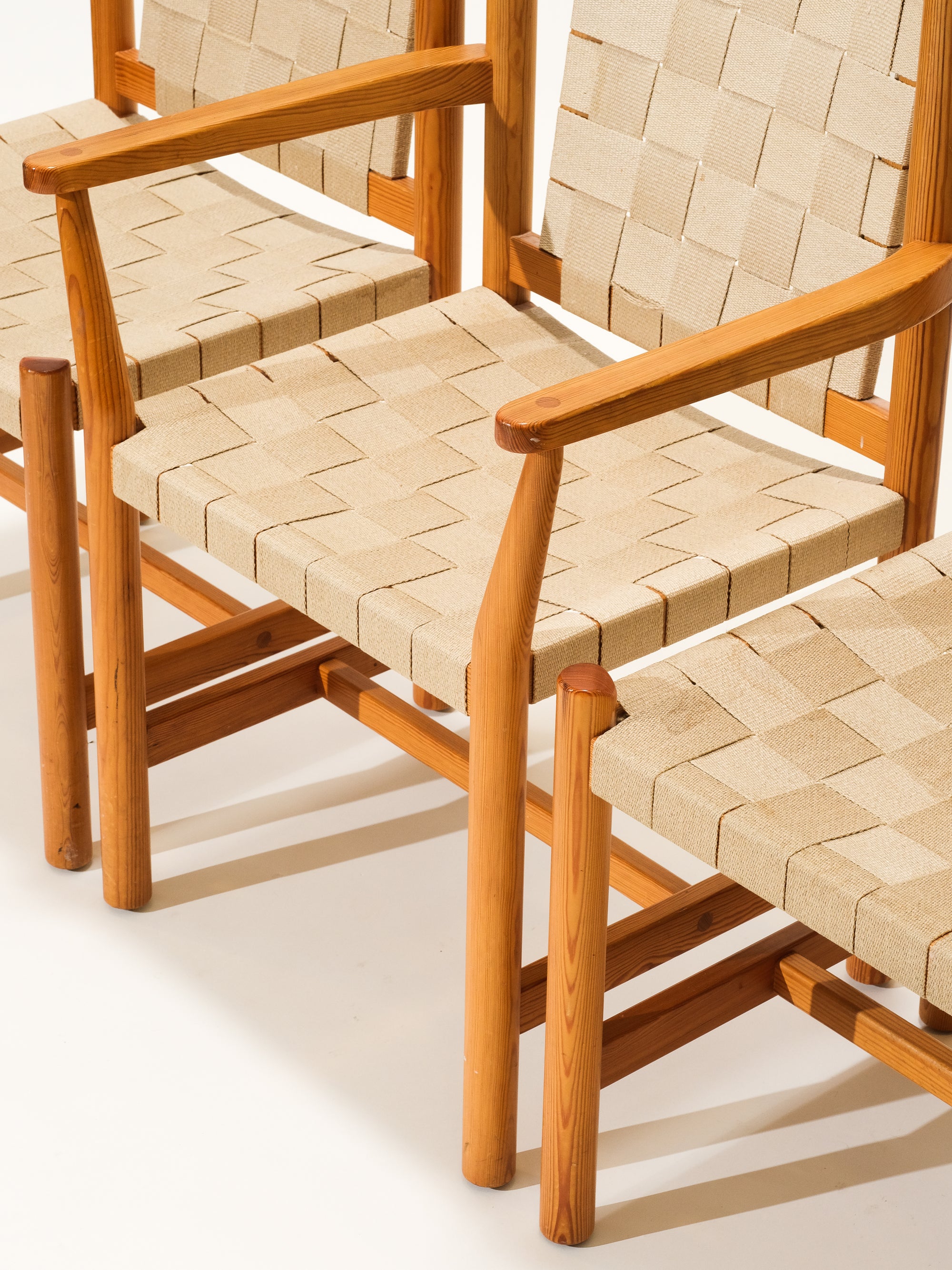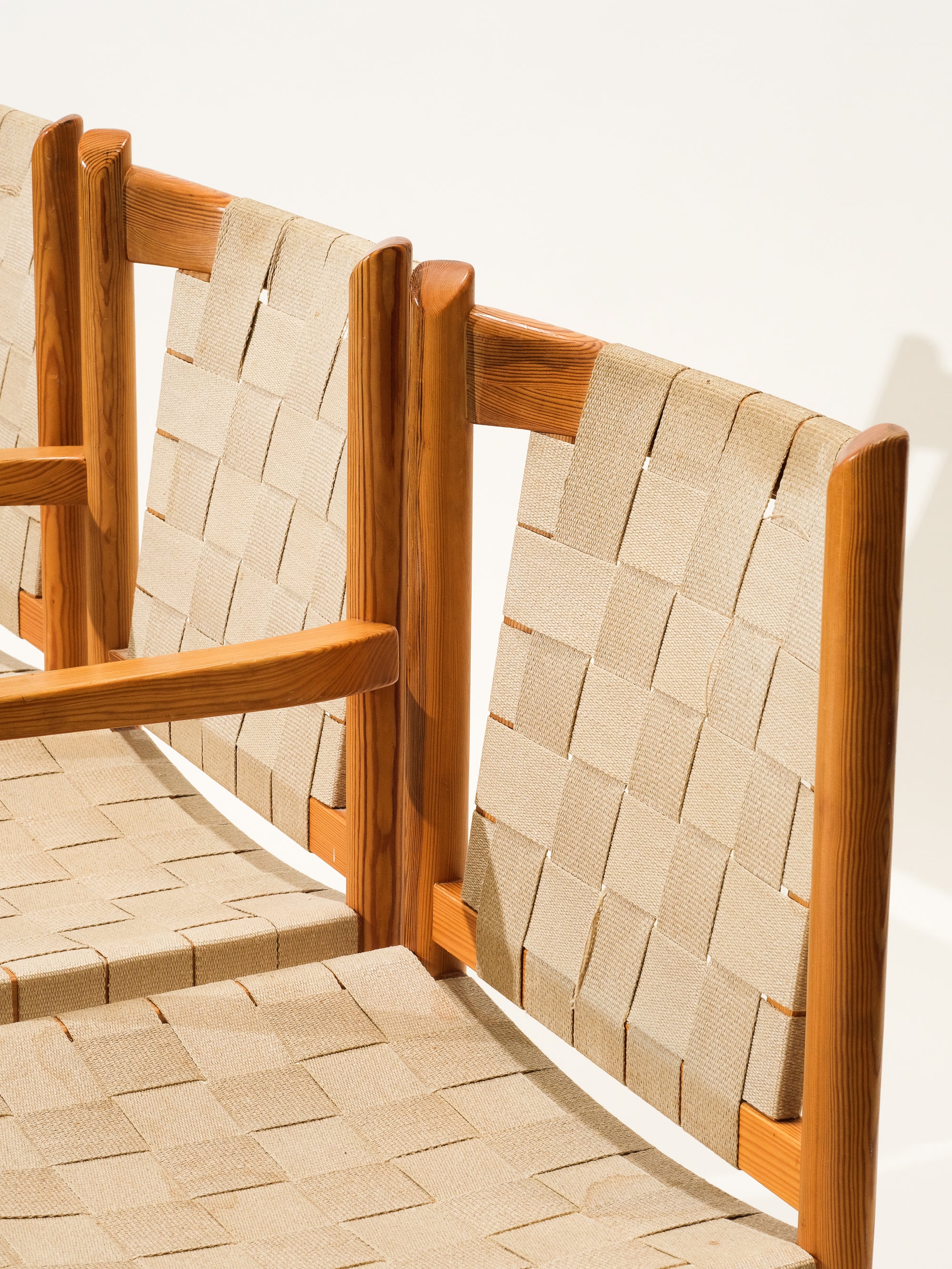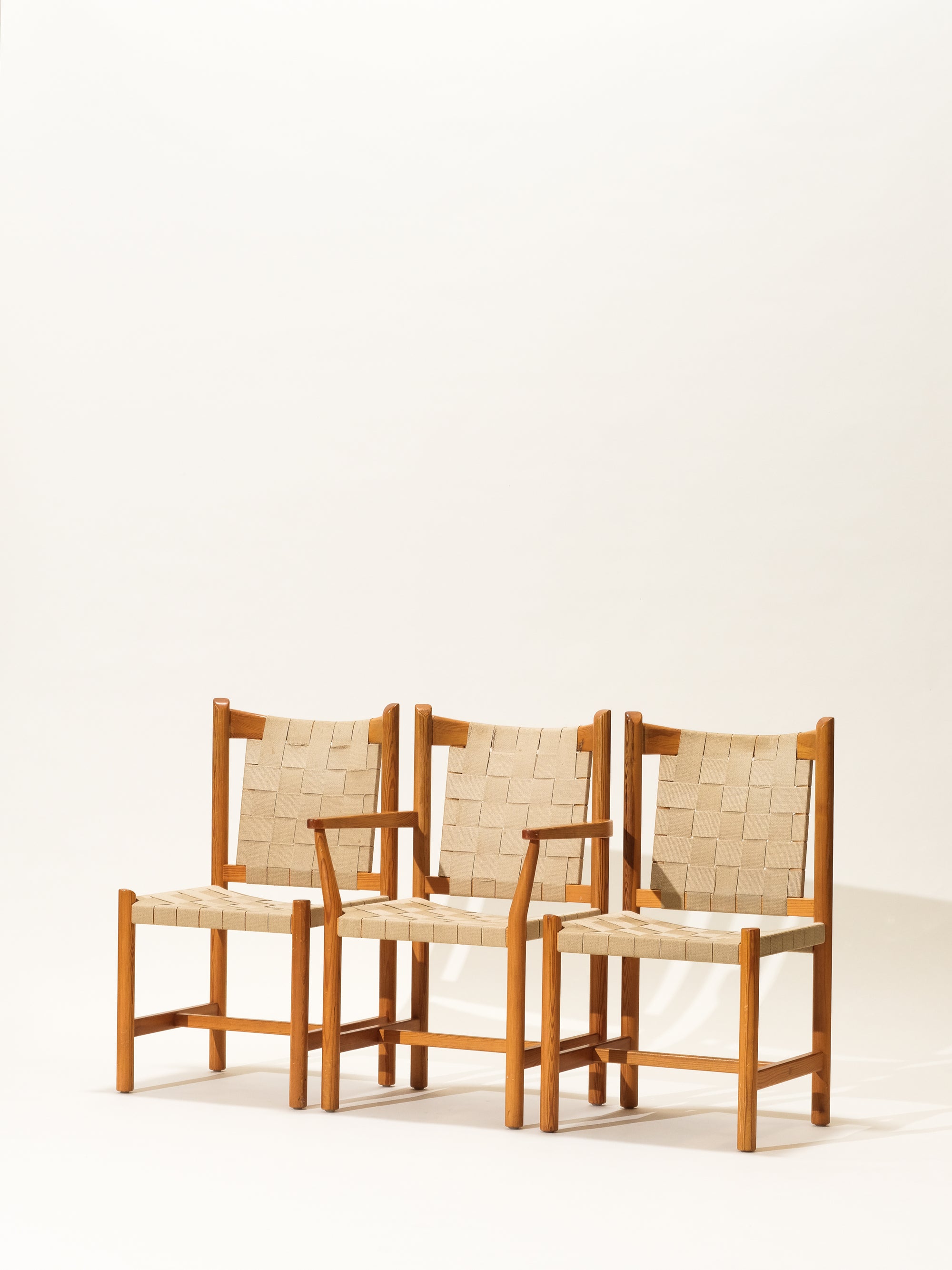 Scandinavian Pine & Natural Webbing Dining Chairs, Set of 3