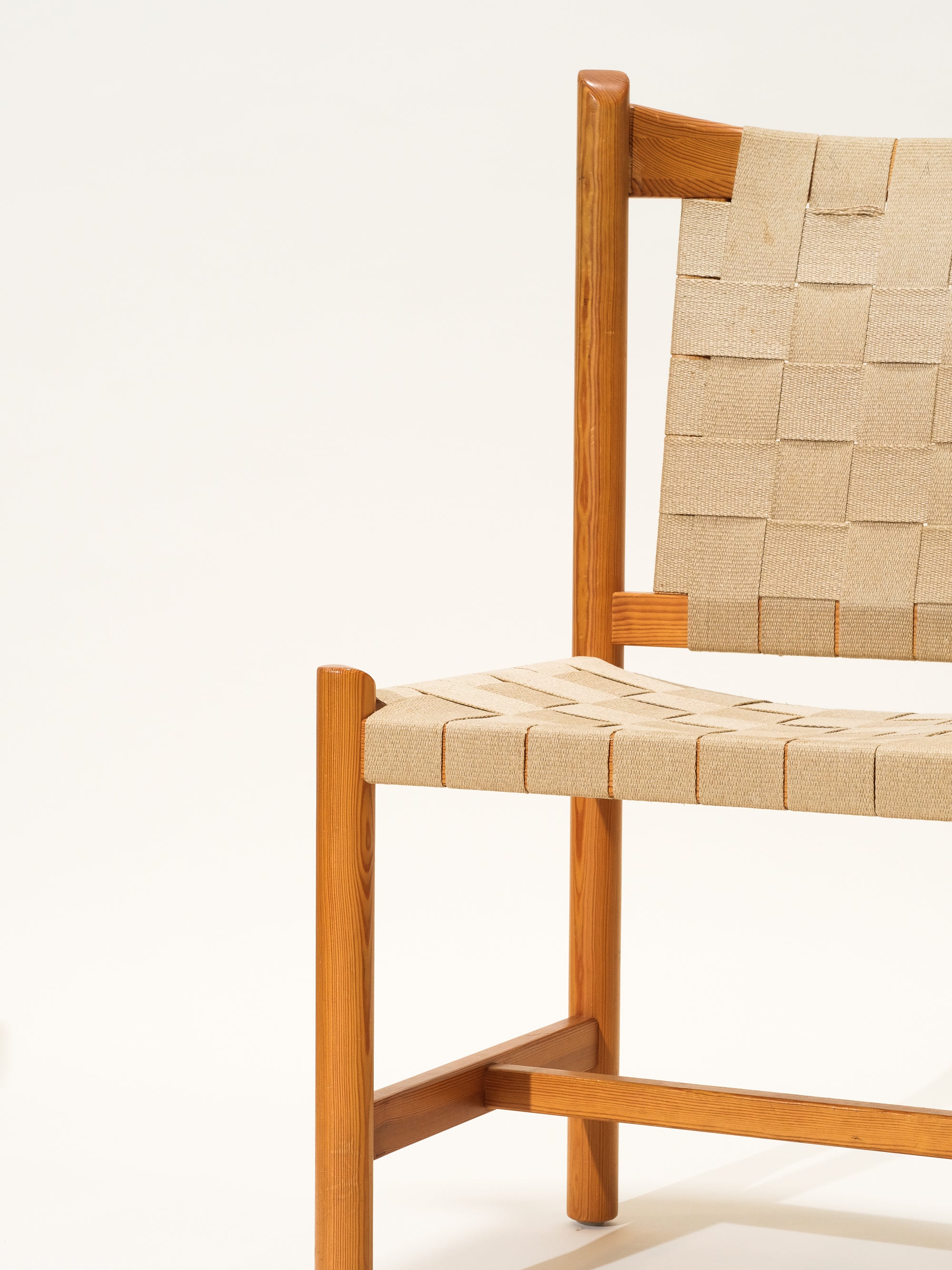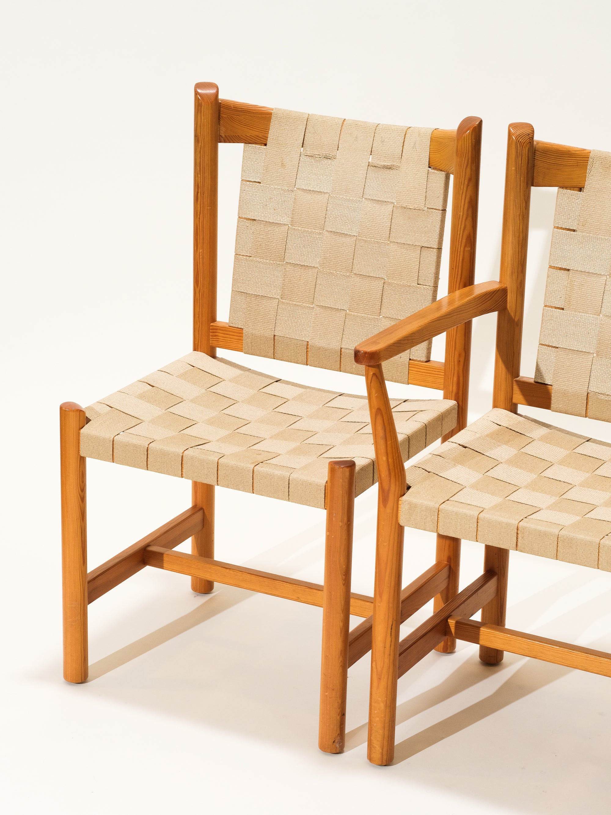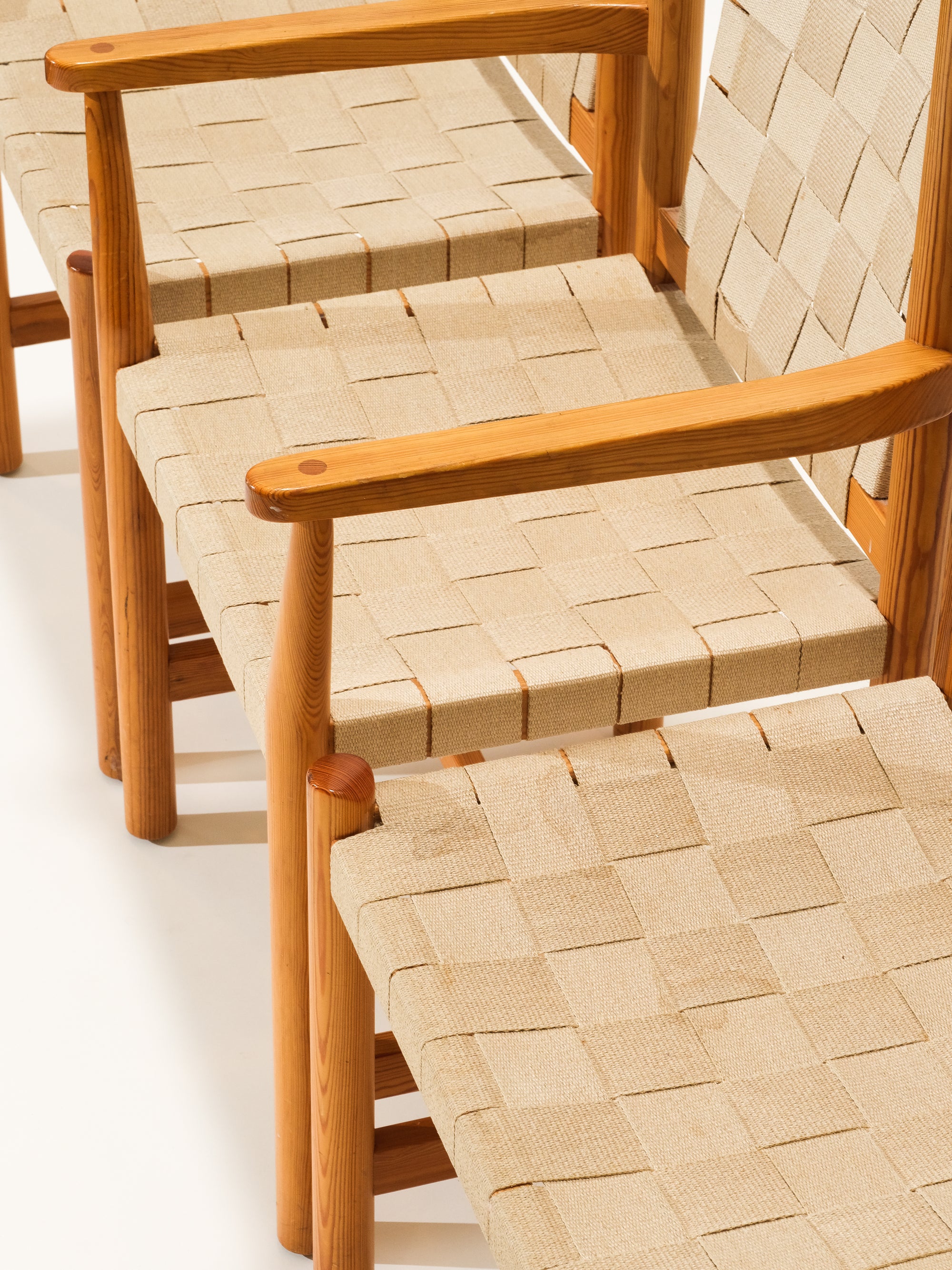 Scandinavian Pine & Natural Webbing Dining Chairs, Set of 3