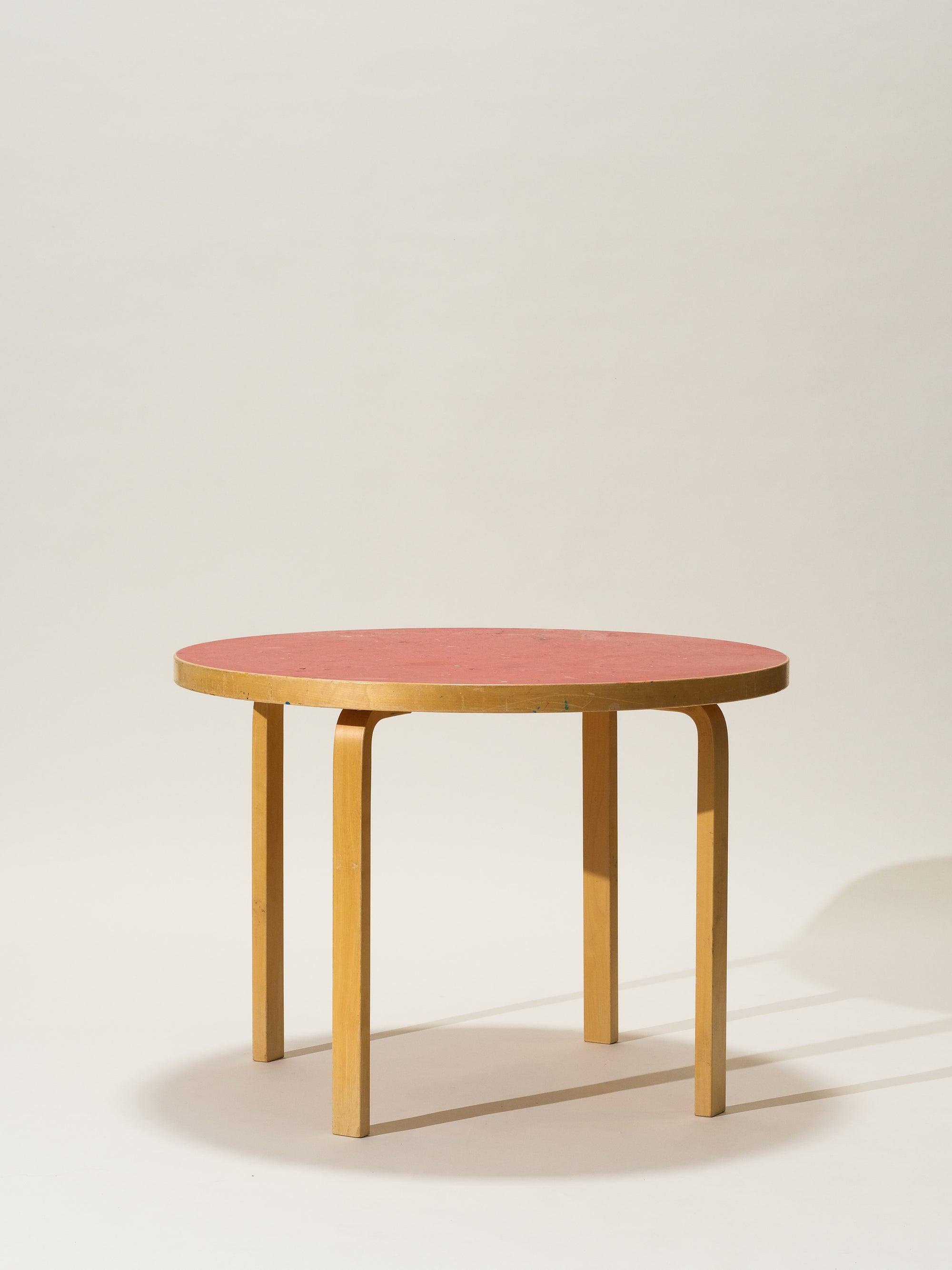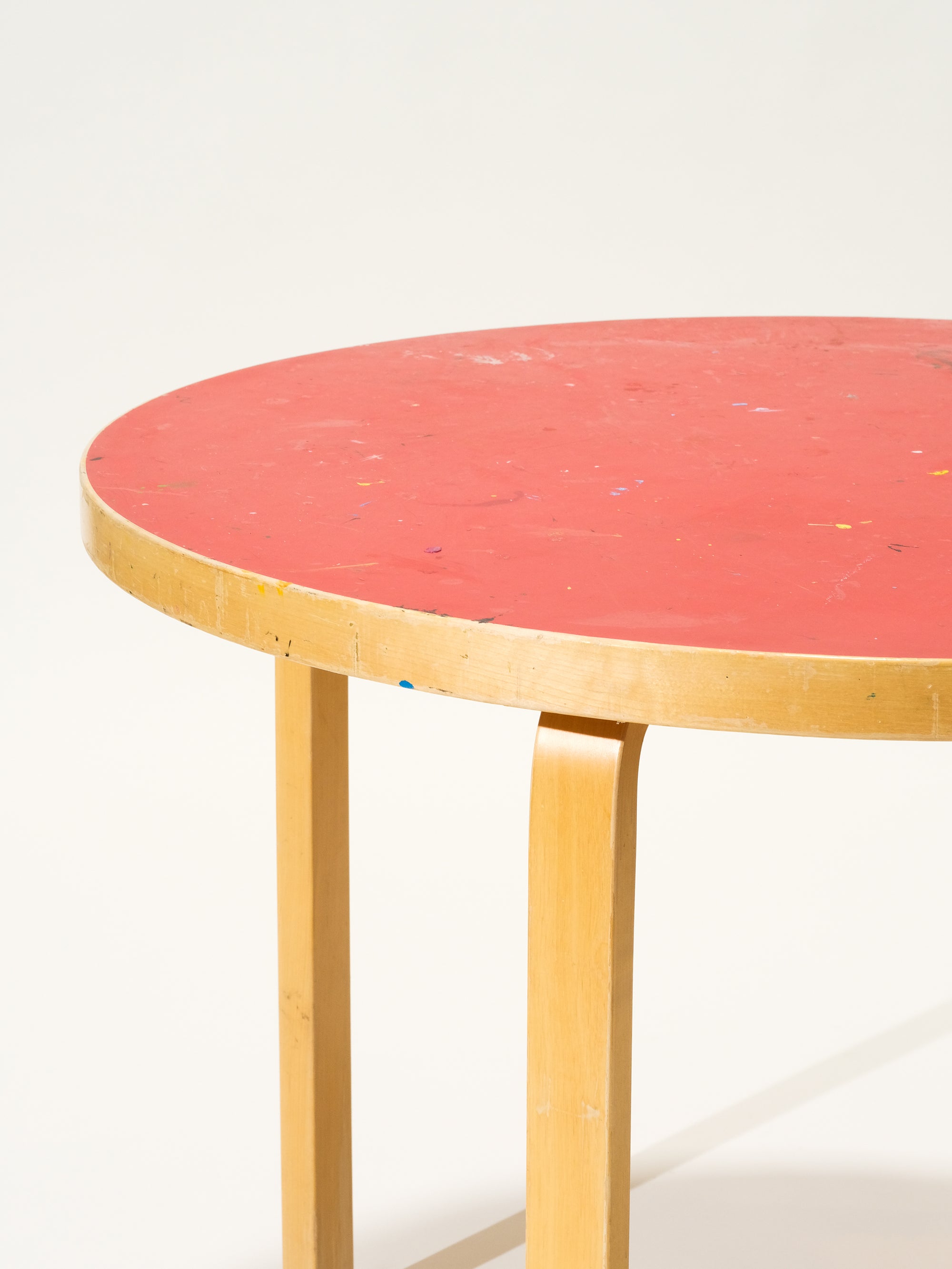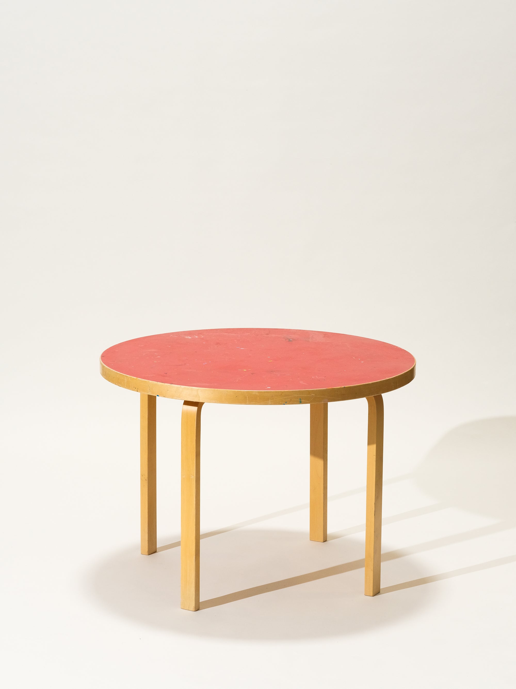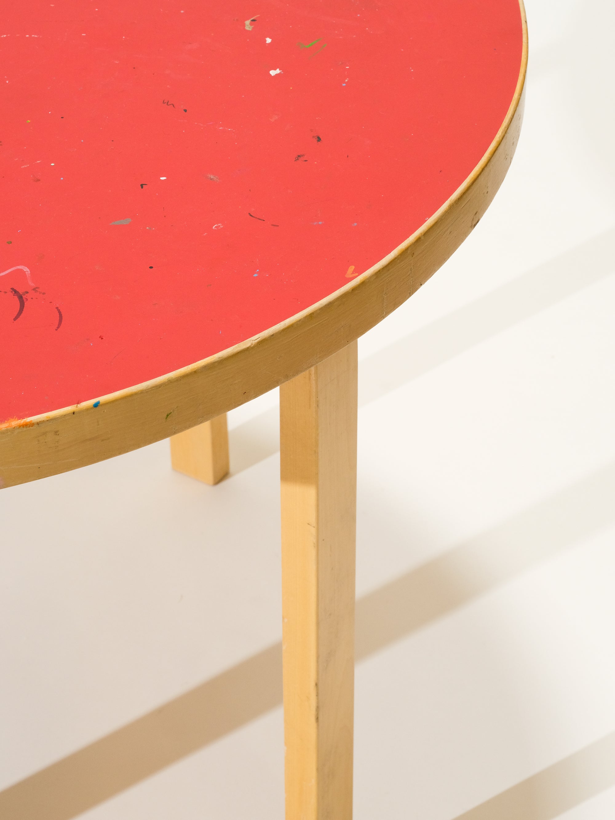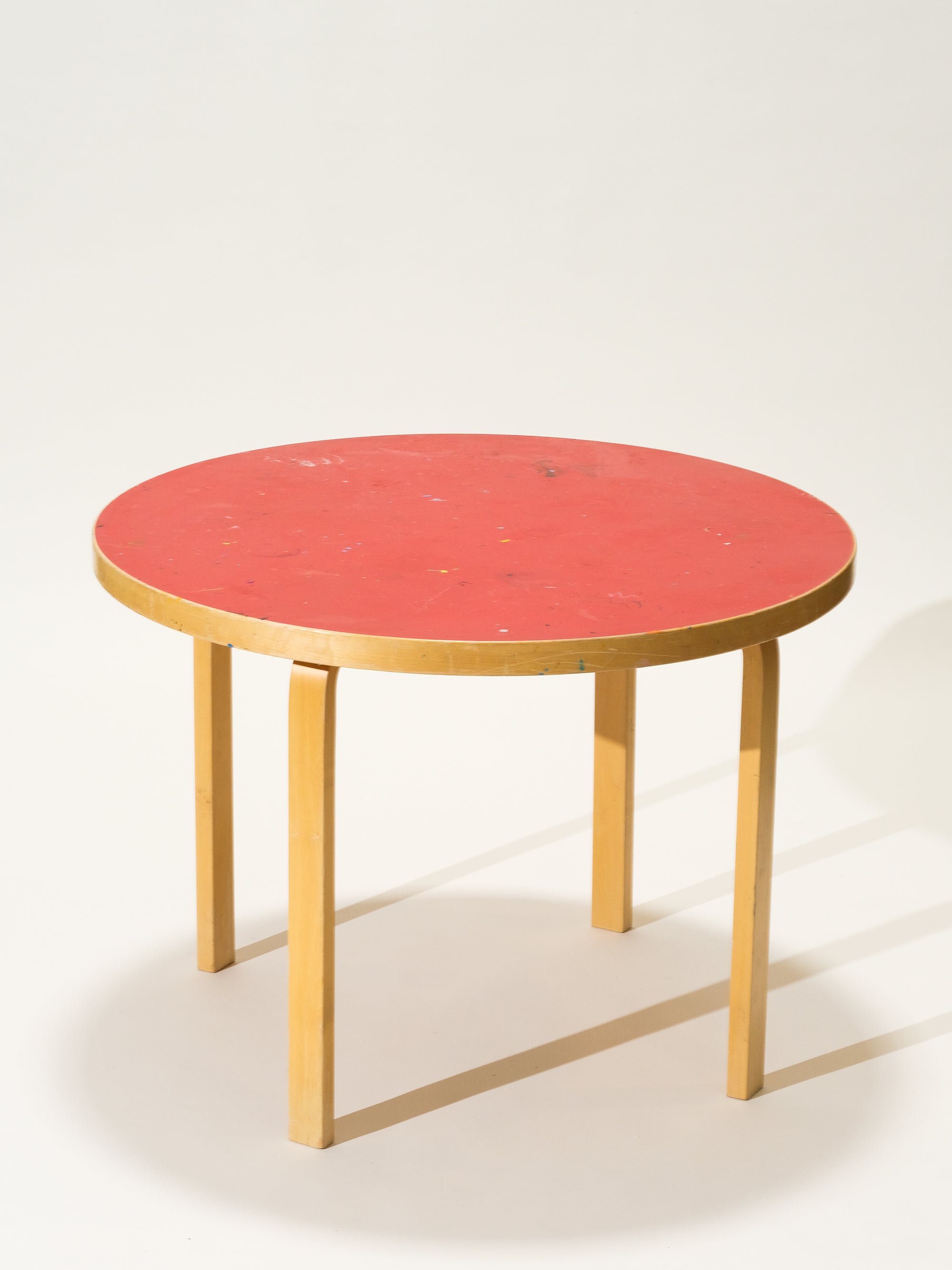 Round Dining Table with Red Linoleum Top by Alvar Aalto for Artek