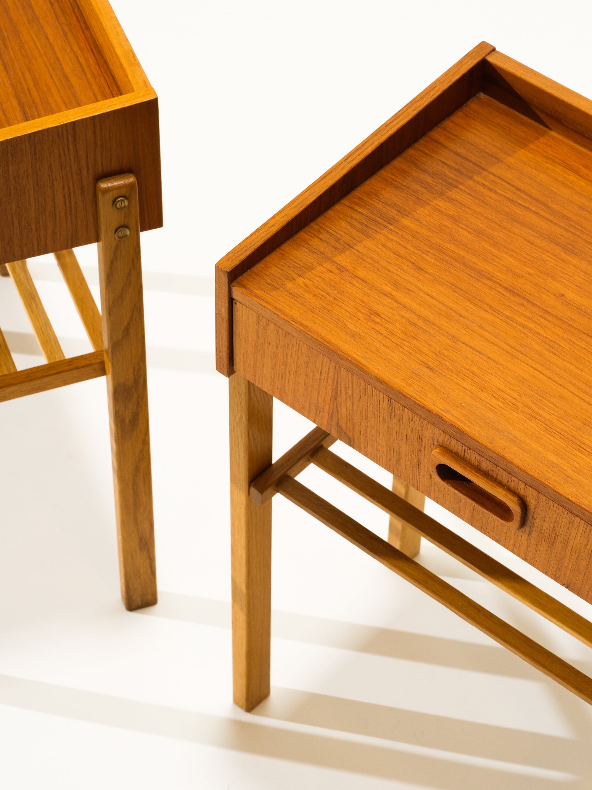 Mid-Century Teak & Oak Bedside Tables, Set of 2