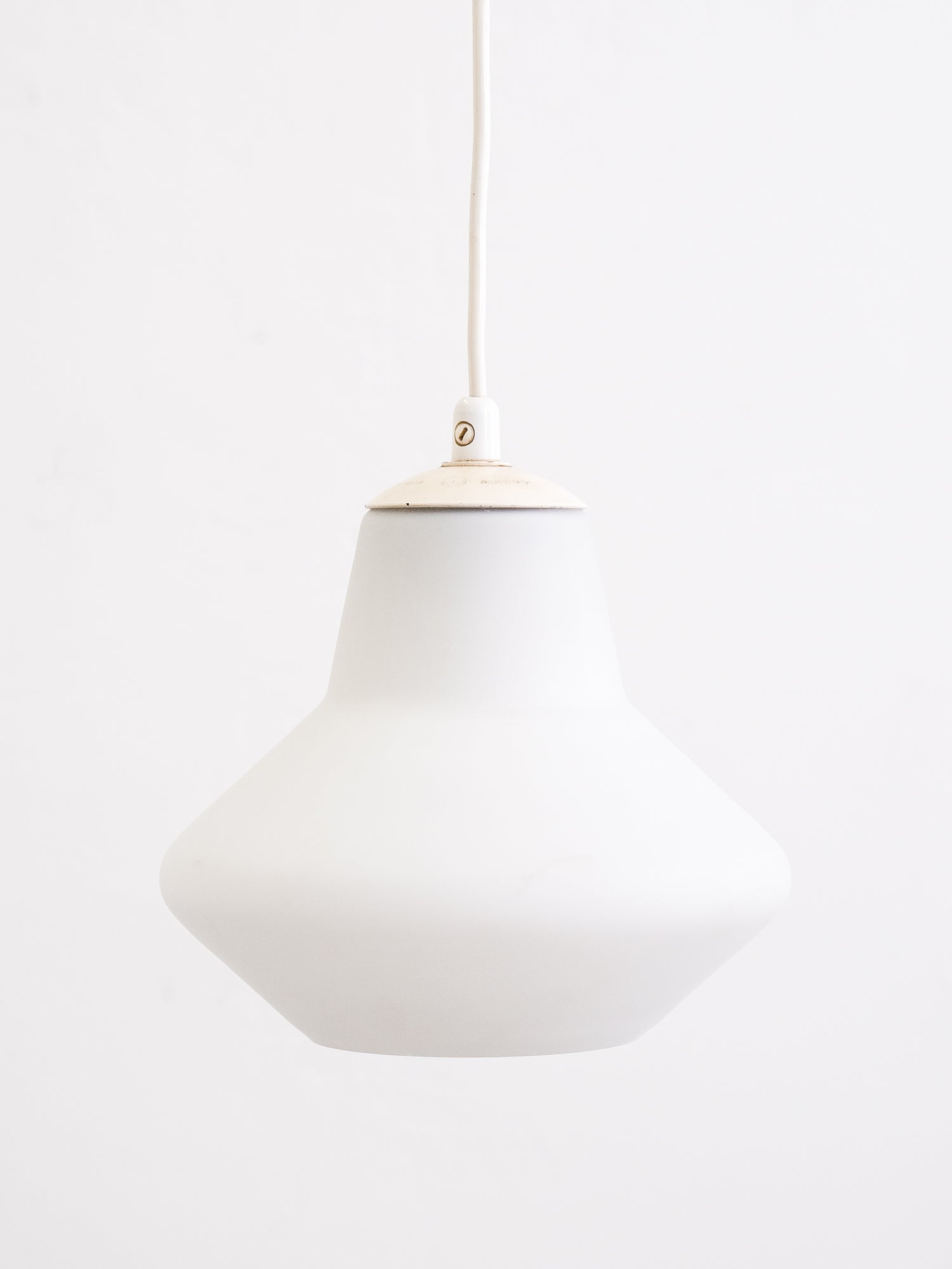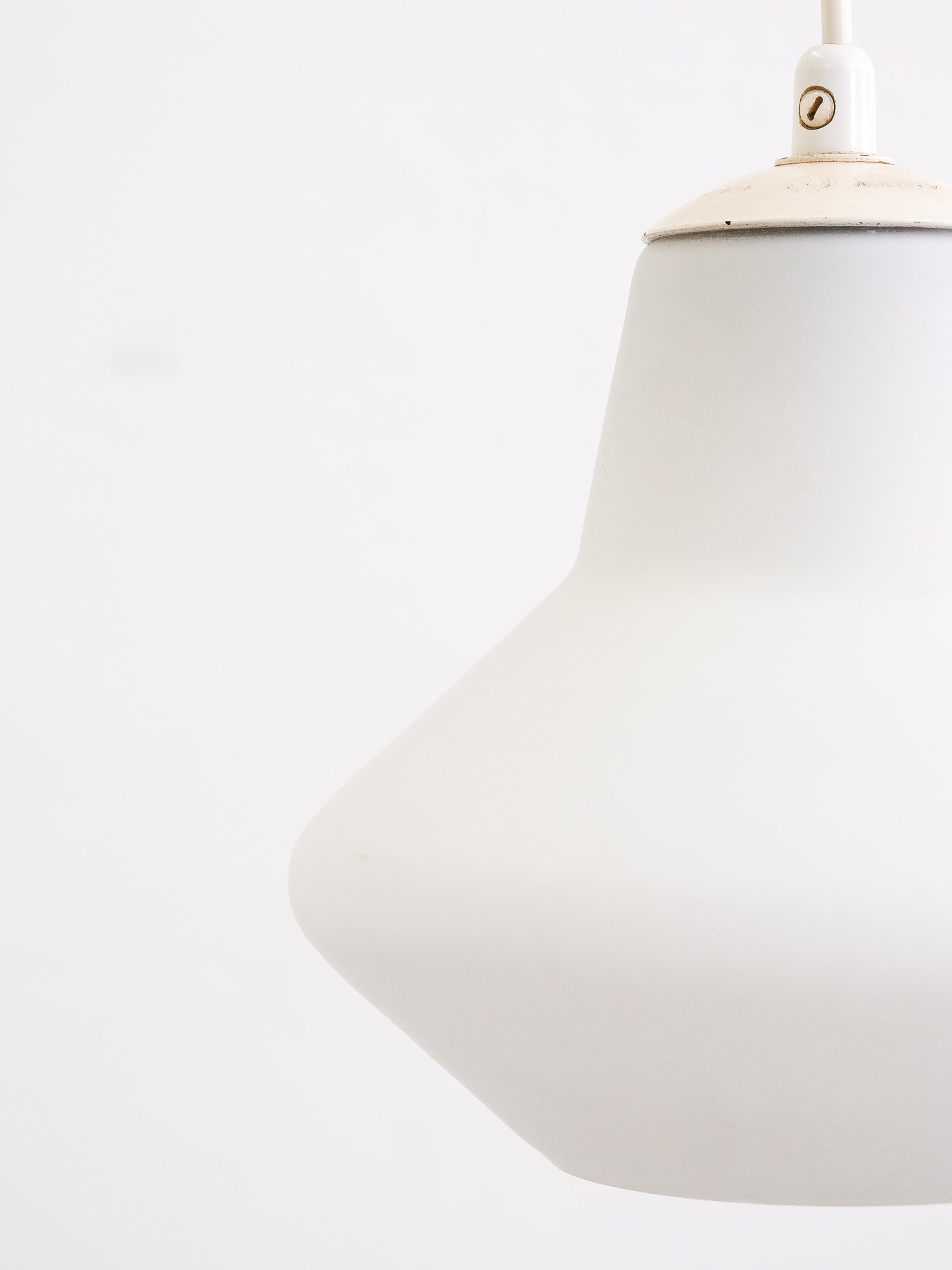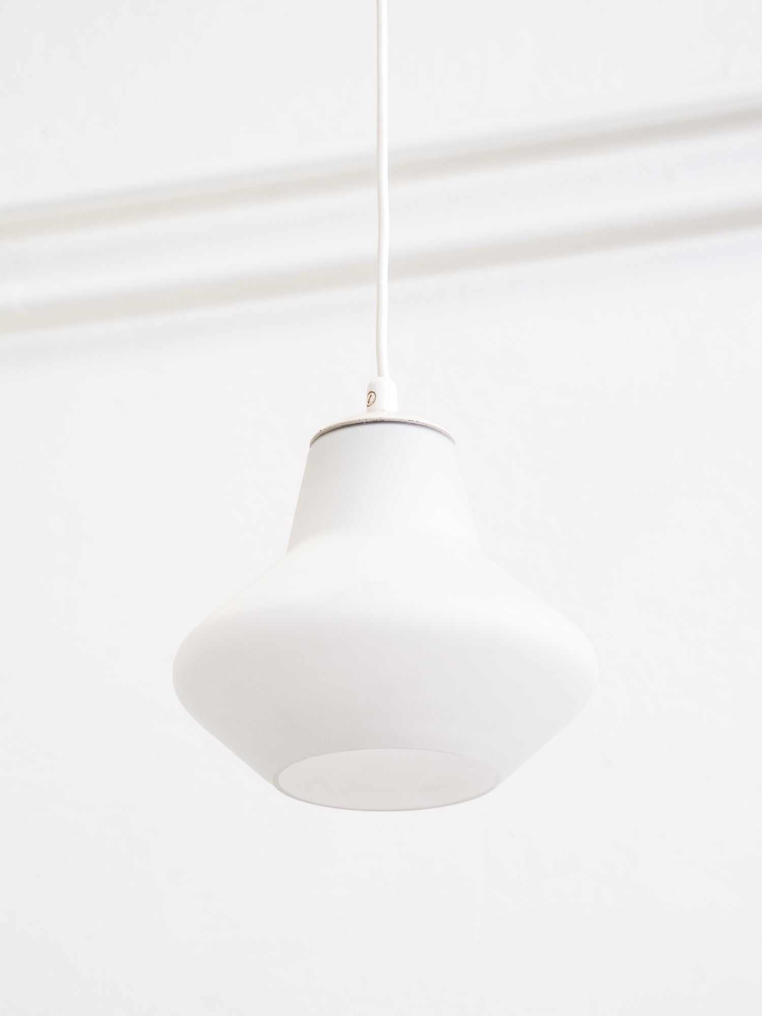 Copper & Opaline Glass Pendant Lamp, 1960s