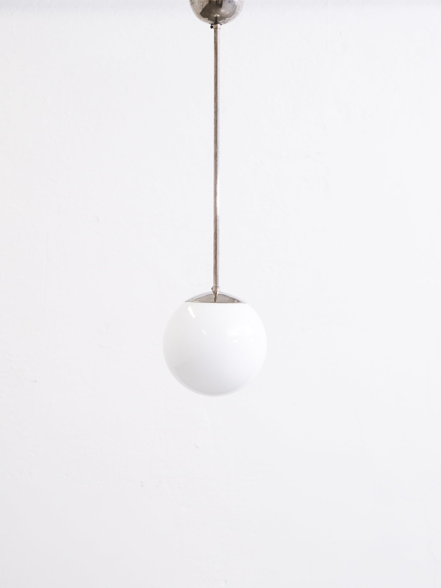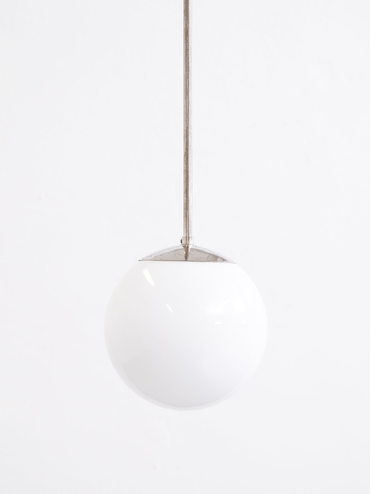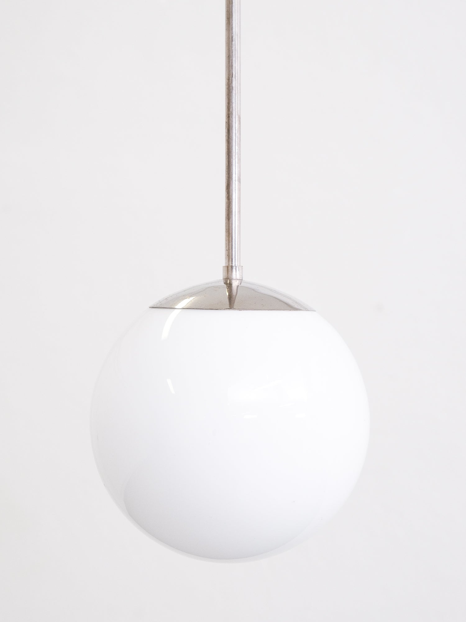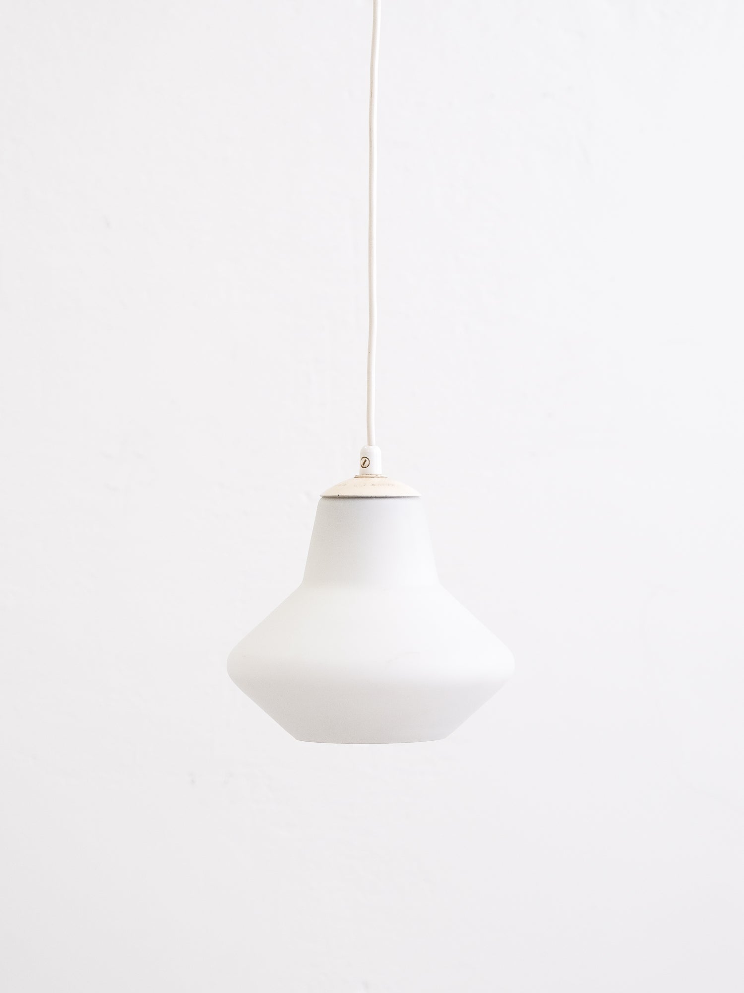 Copper & Opaline Glass Pendant Lamp, 1960s