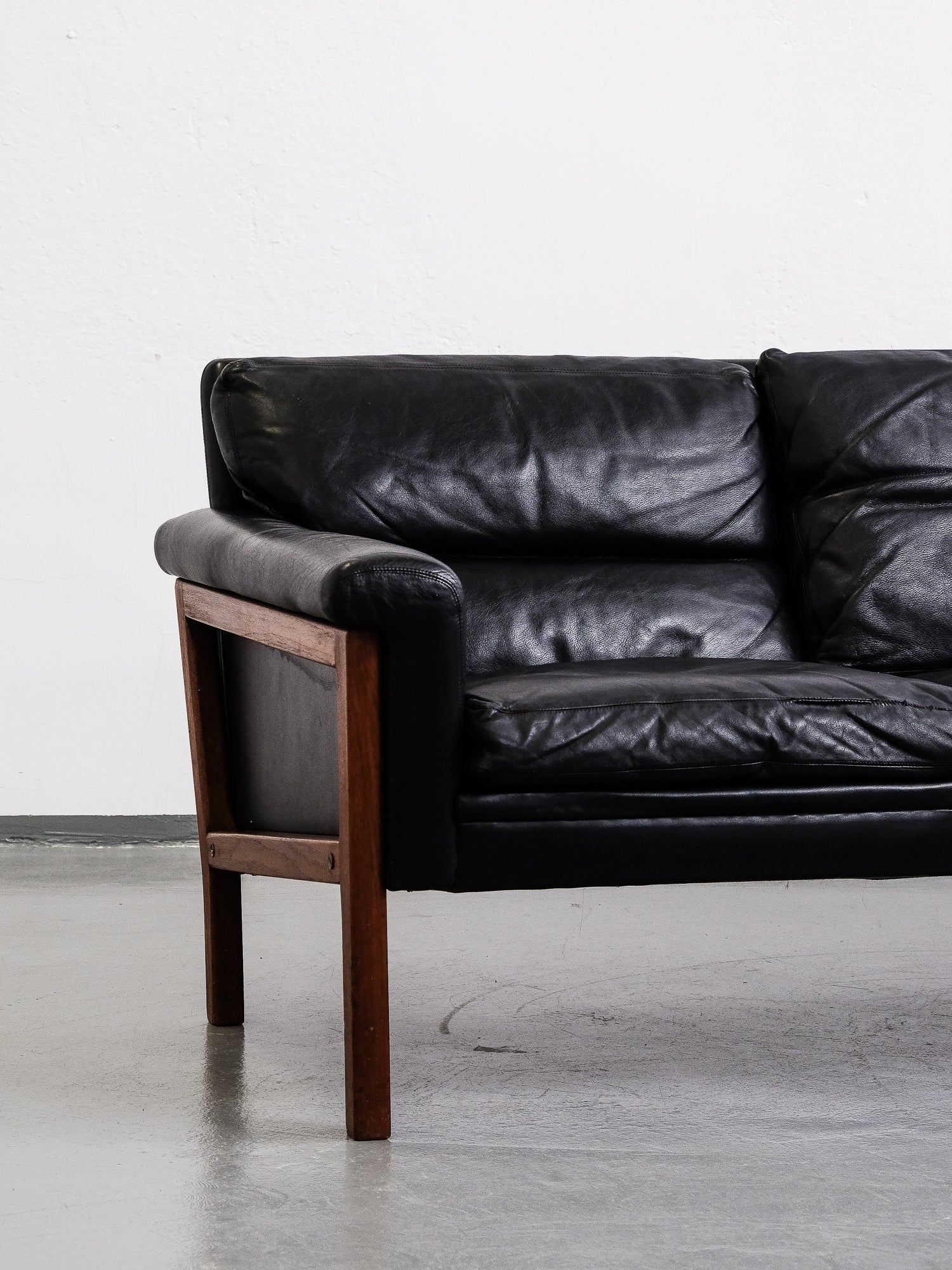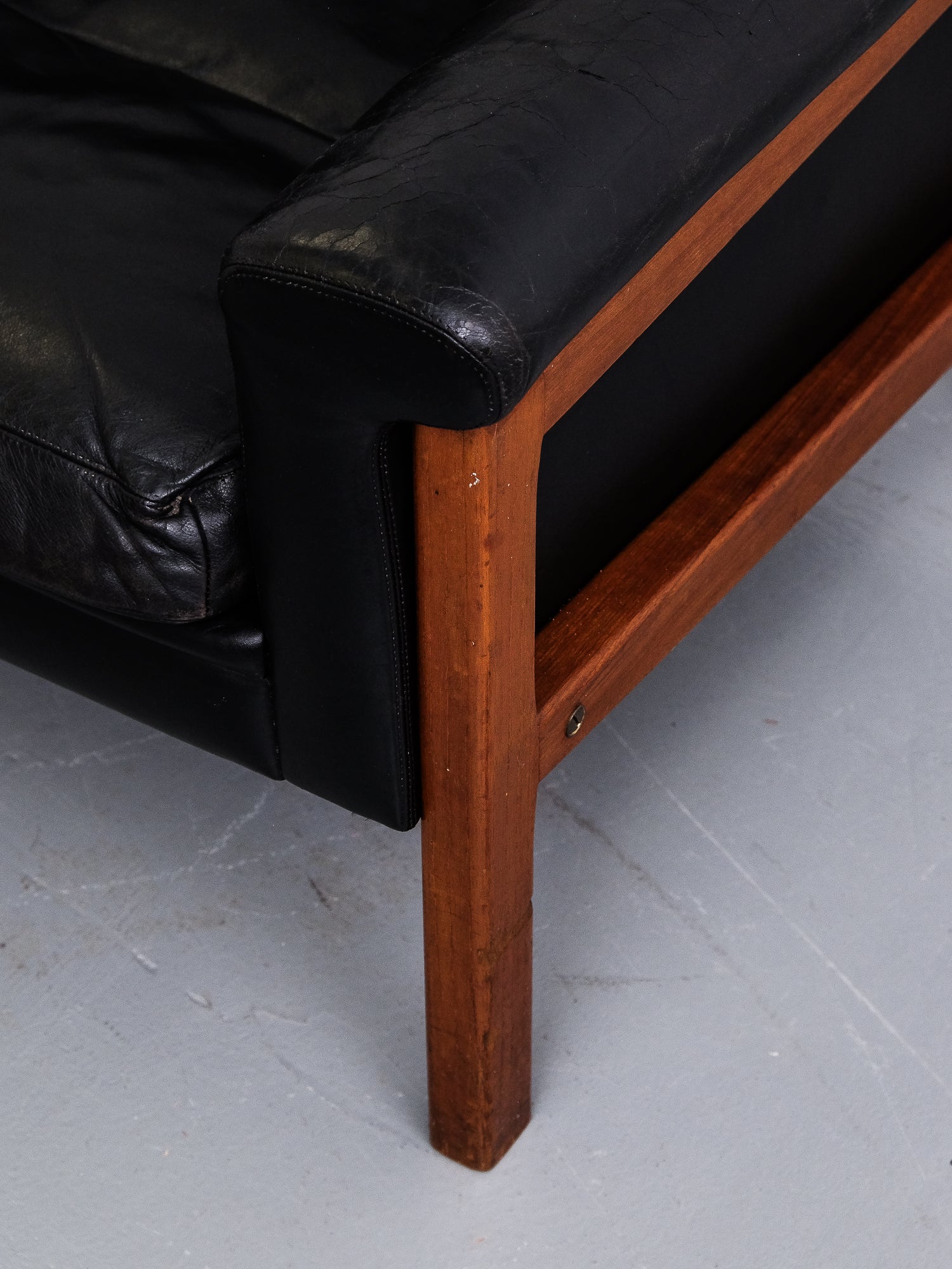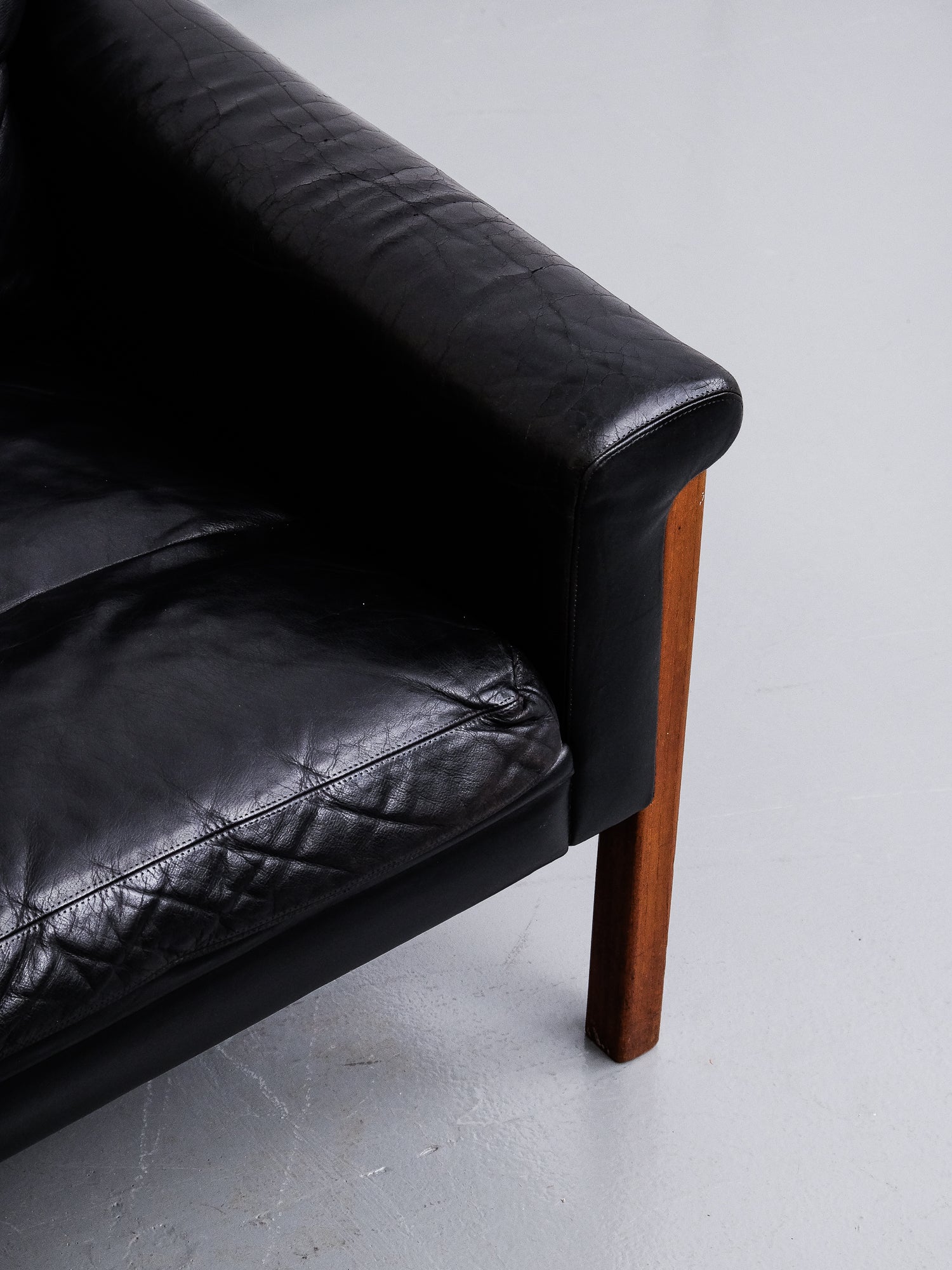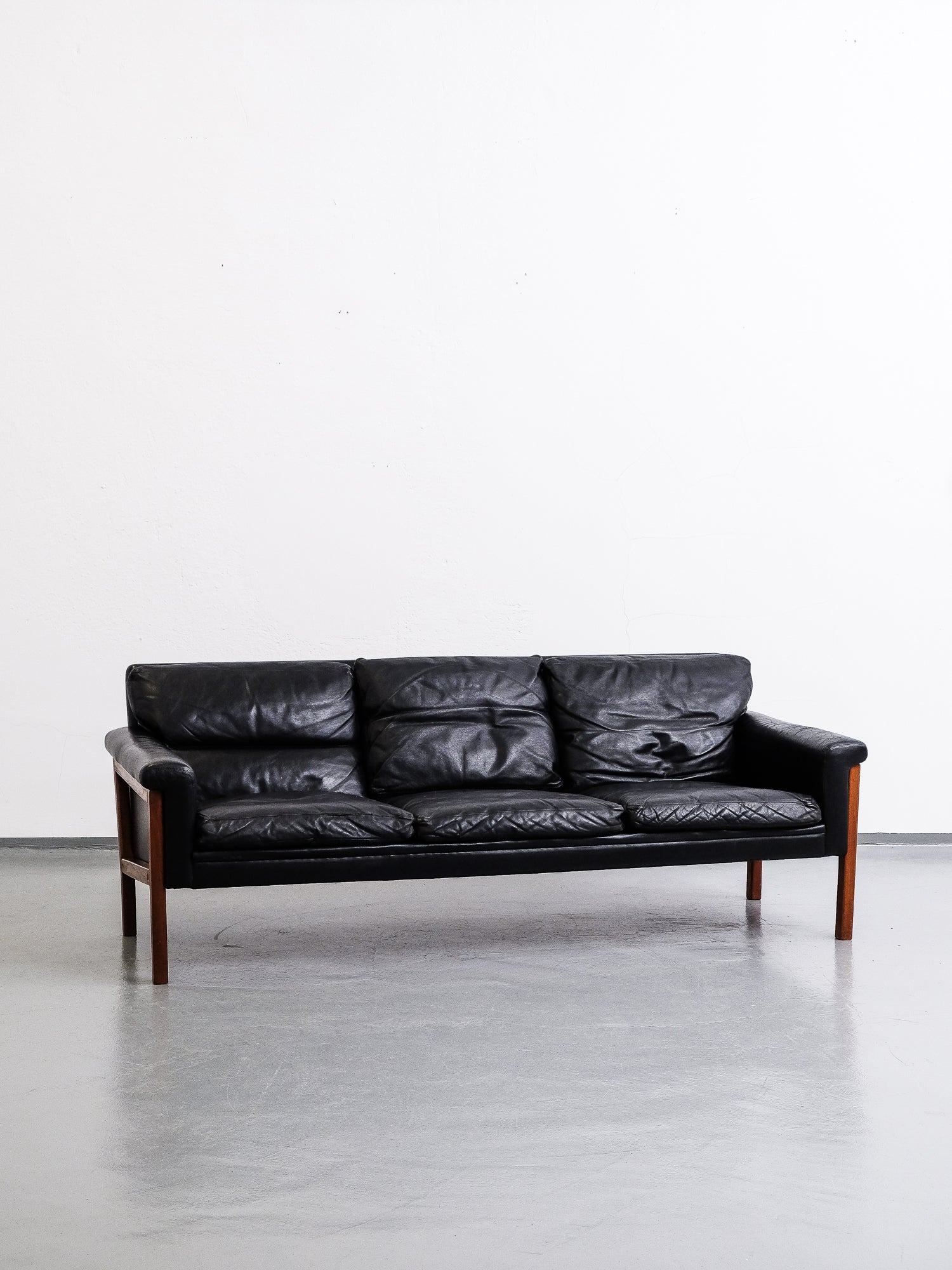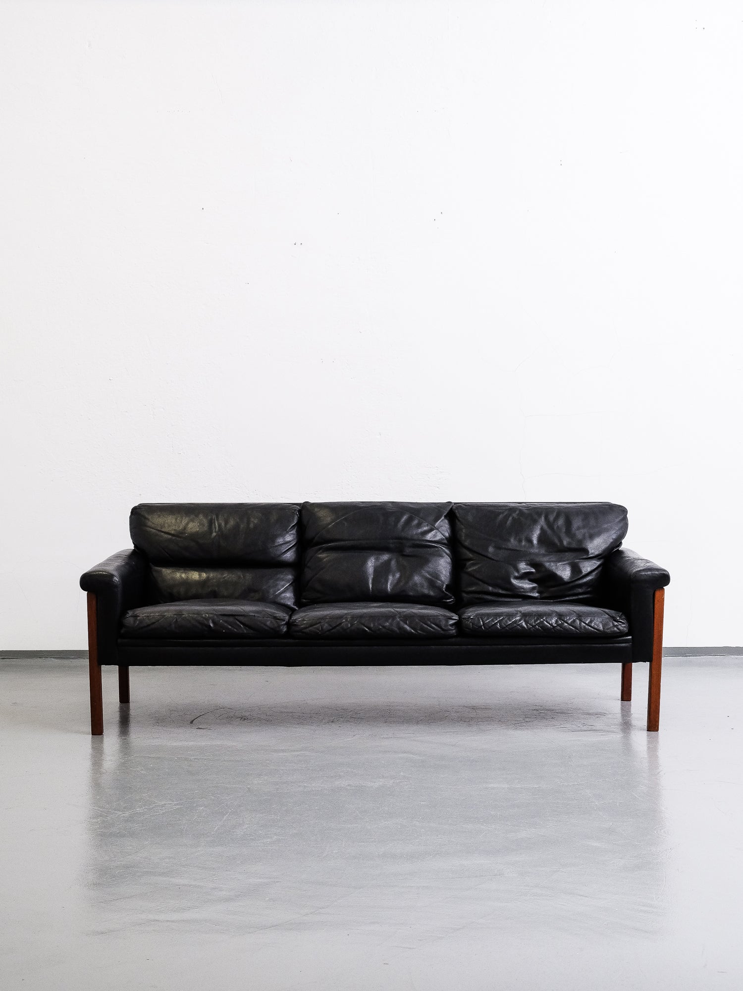 Swedish Black Leather 3-Seater Sofa, 1960s