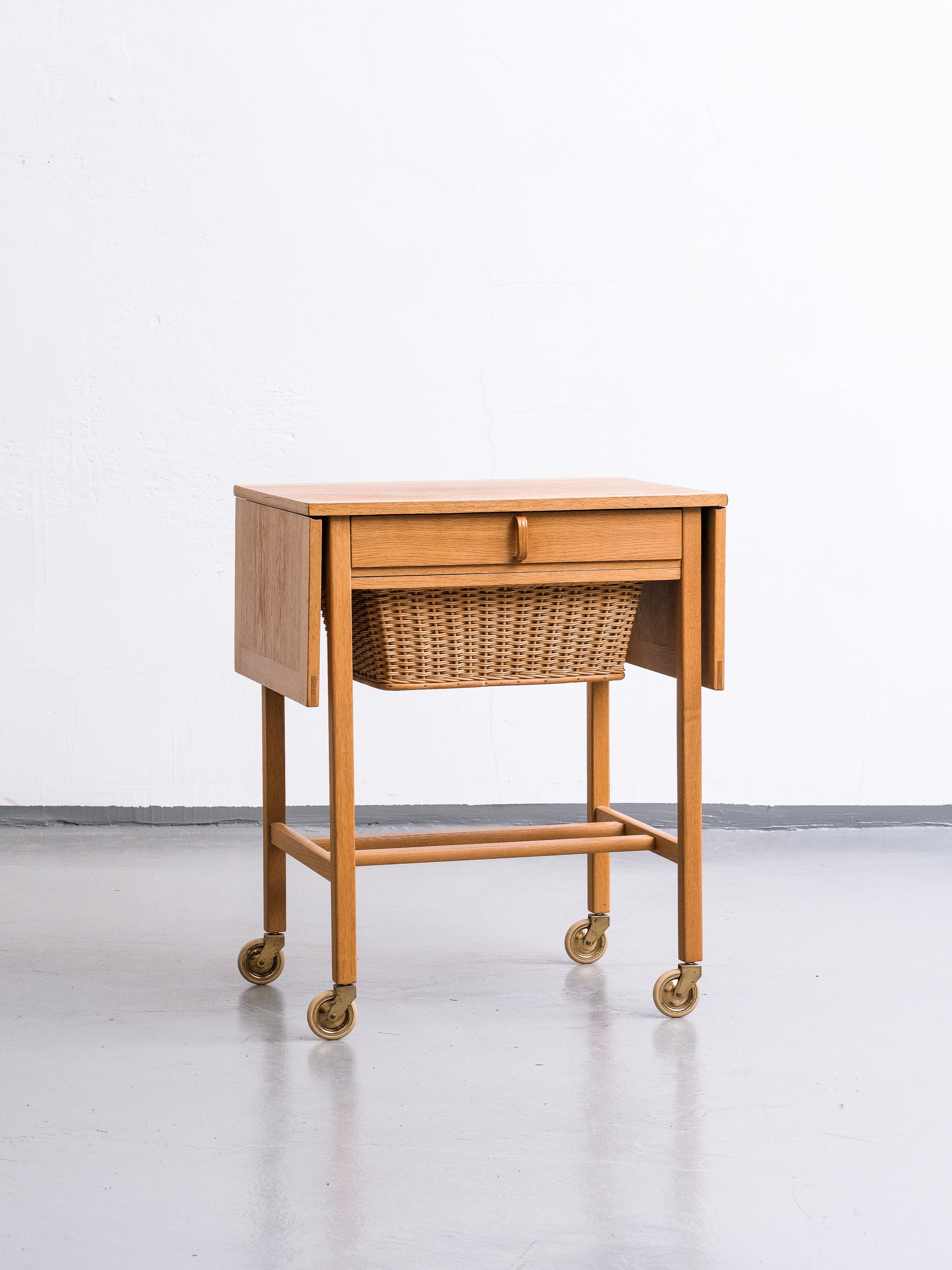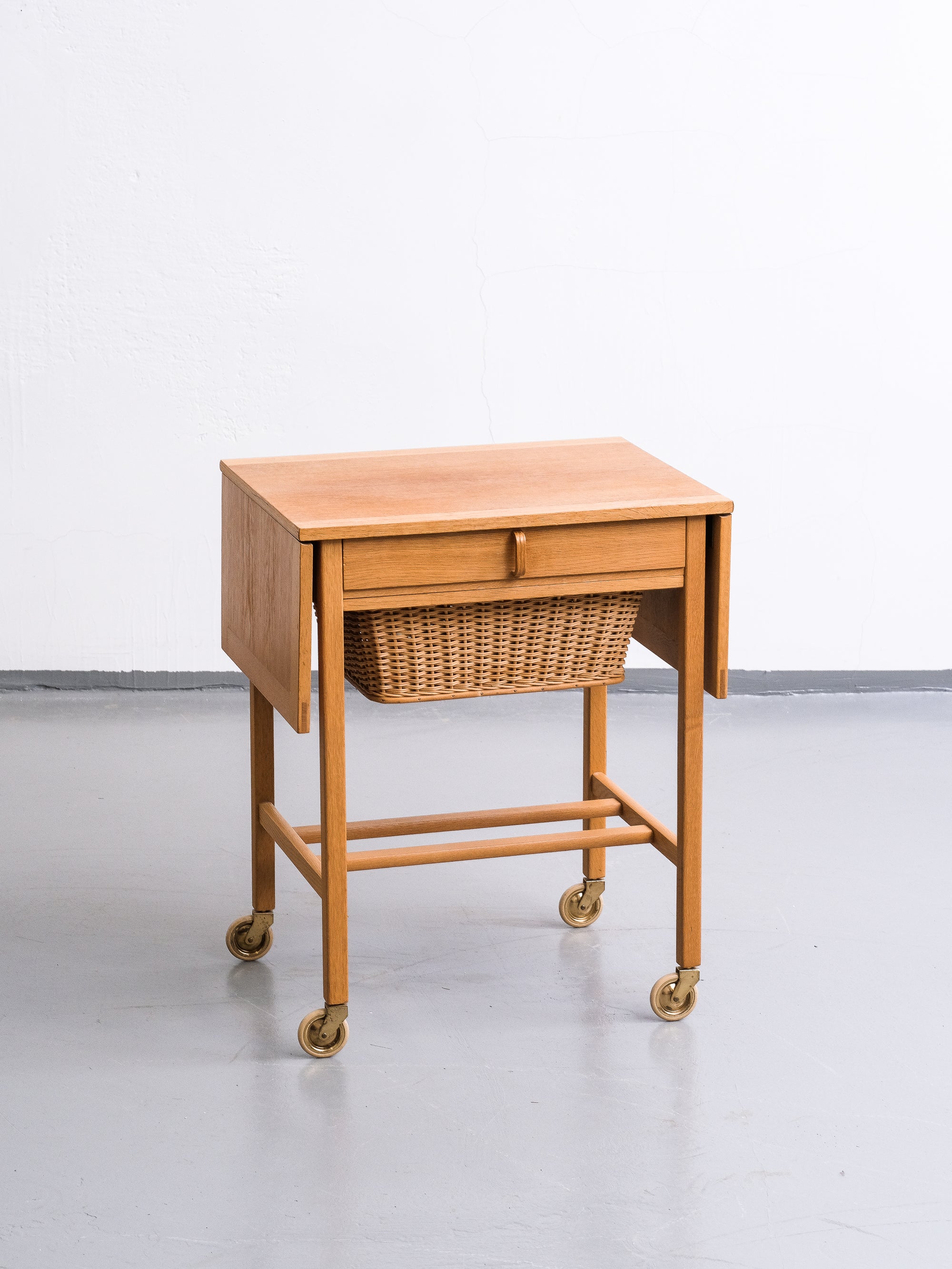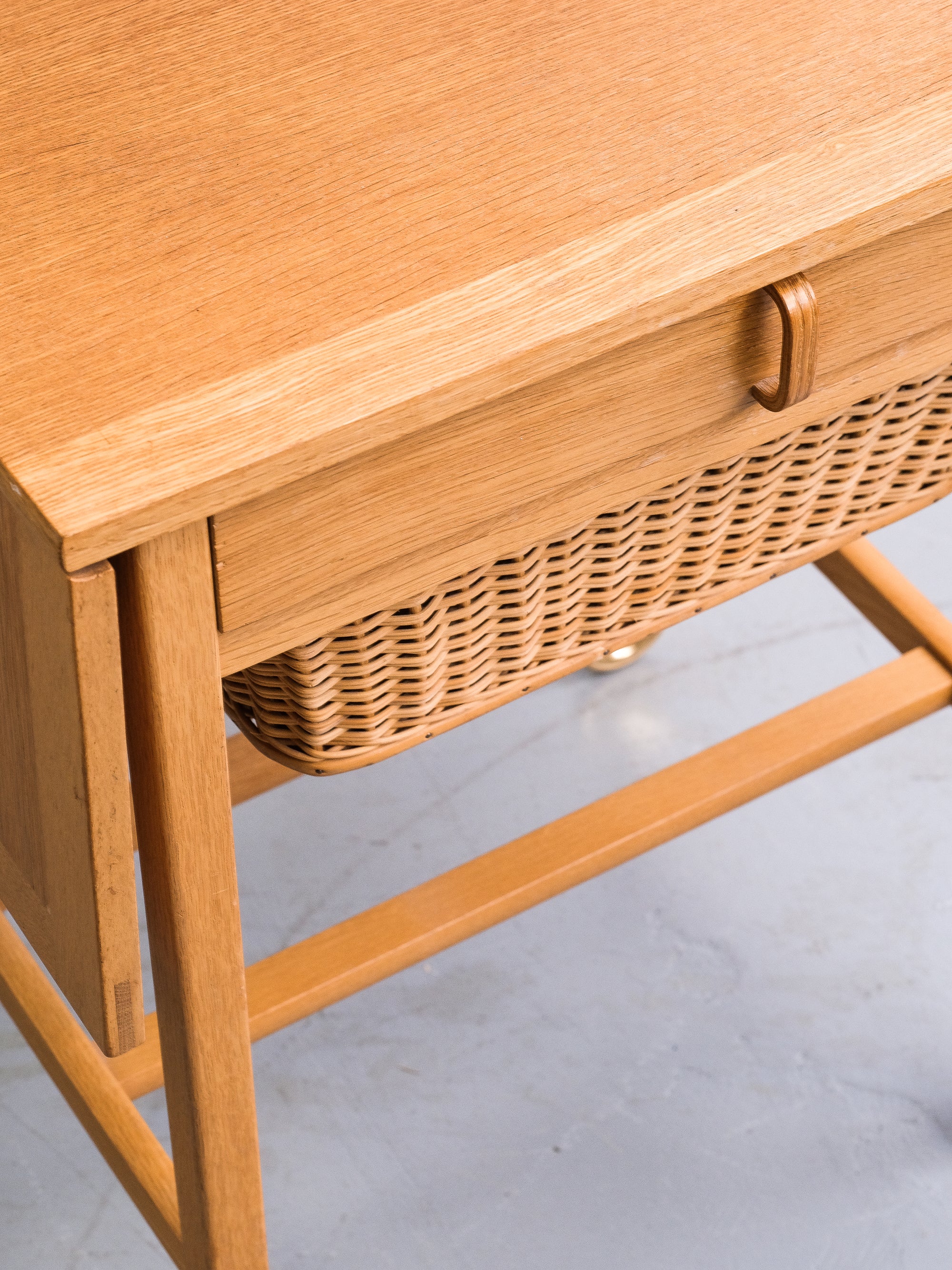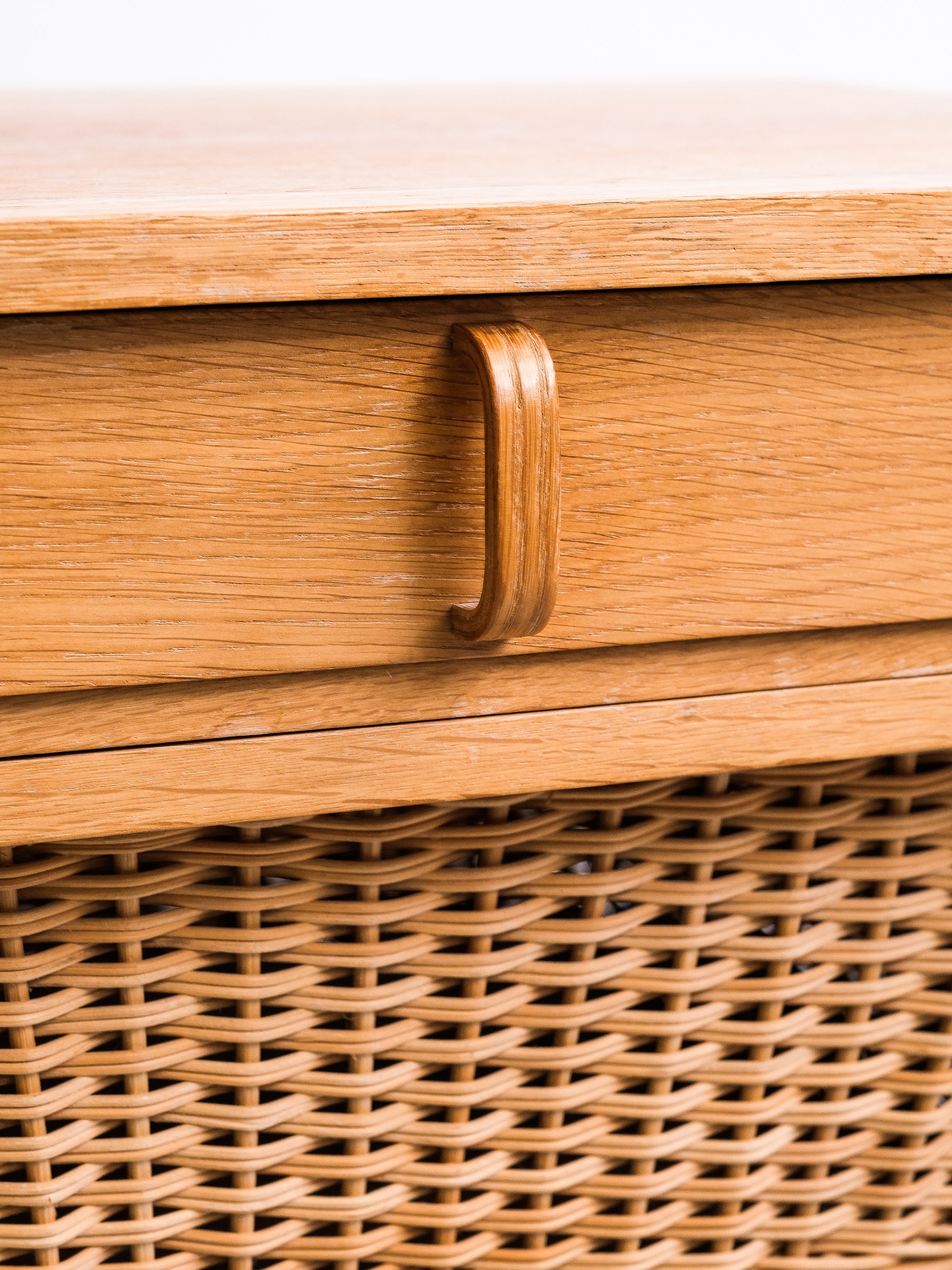 Oak Side Table with Rattan Basket, Design Bertil Fridhagen, Bodafors, Sweden, 1960s