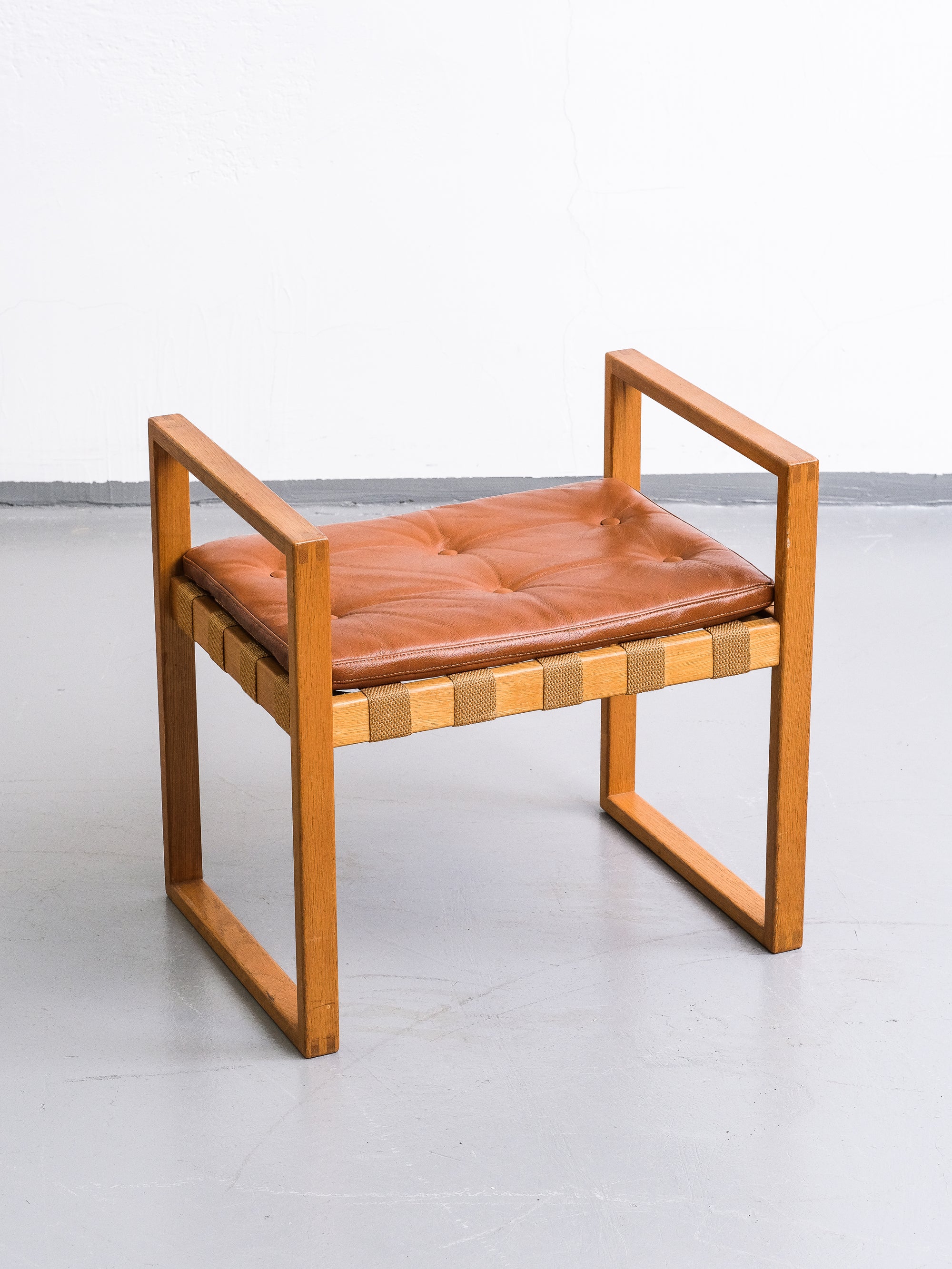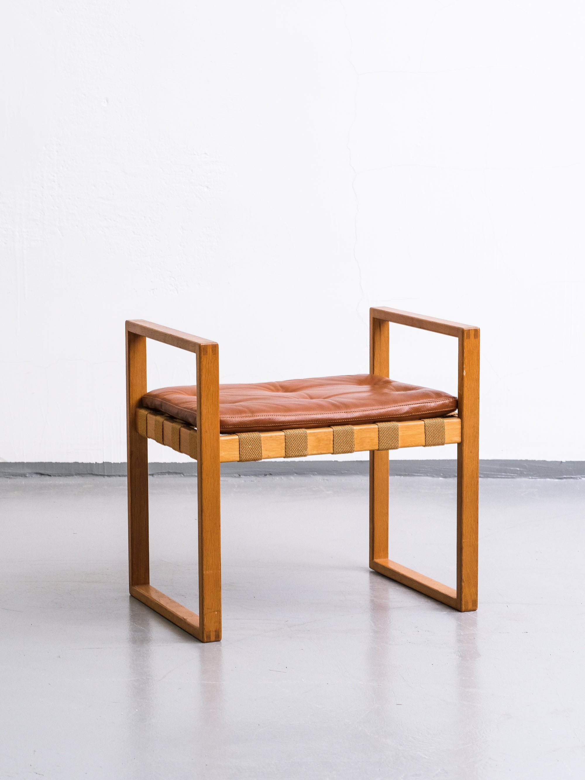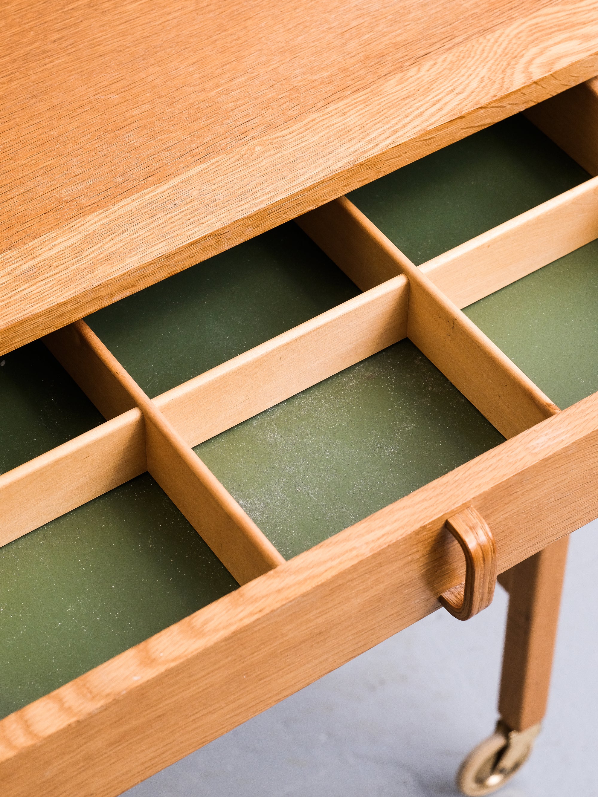 Oak Side Table with Rattan Basket, Design Bertil Fridhagen, Bodafors, Sweden, 1960s