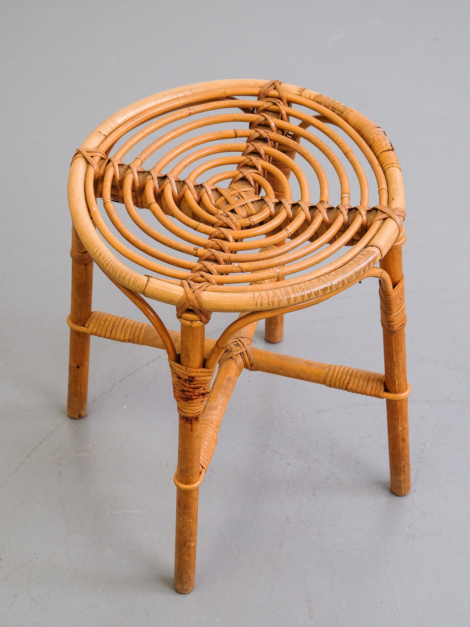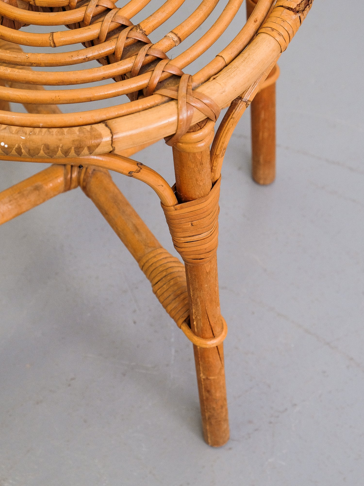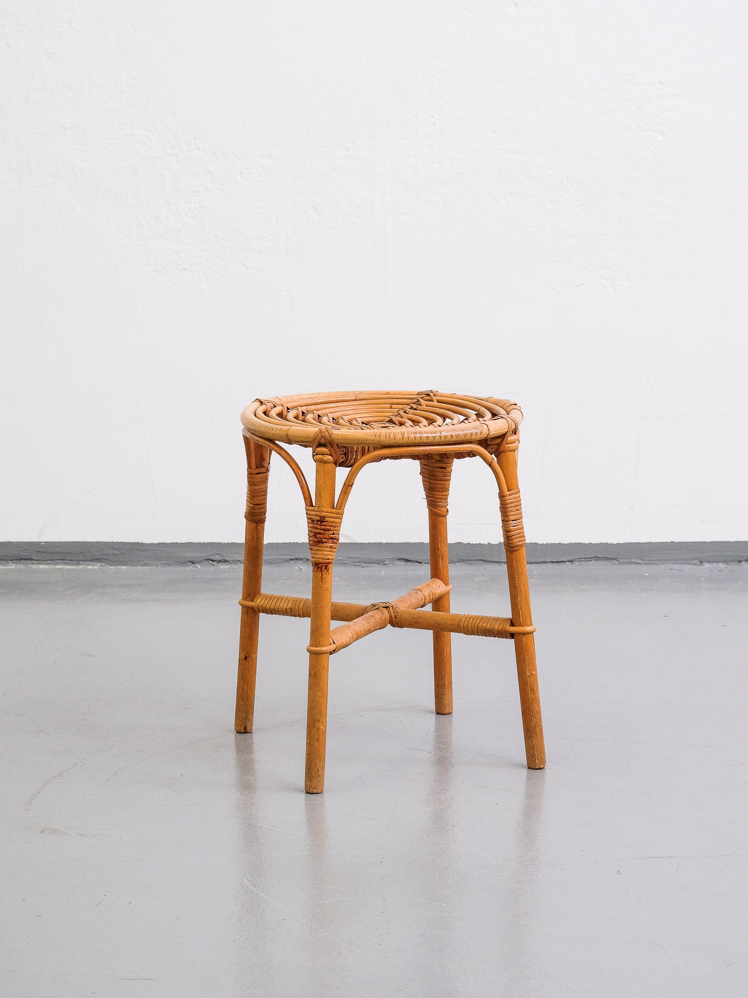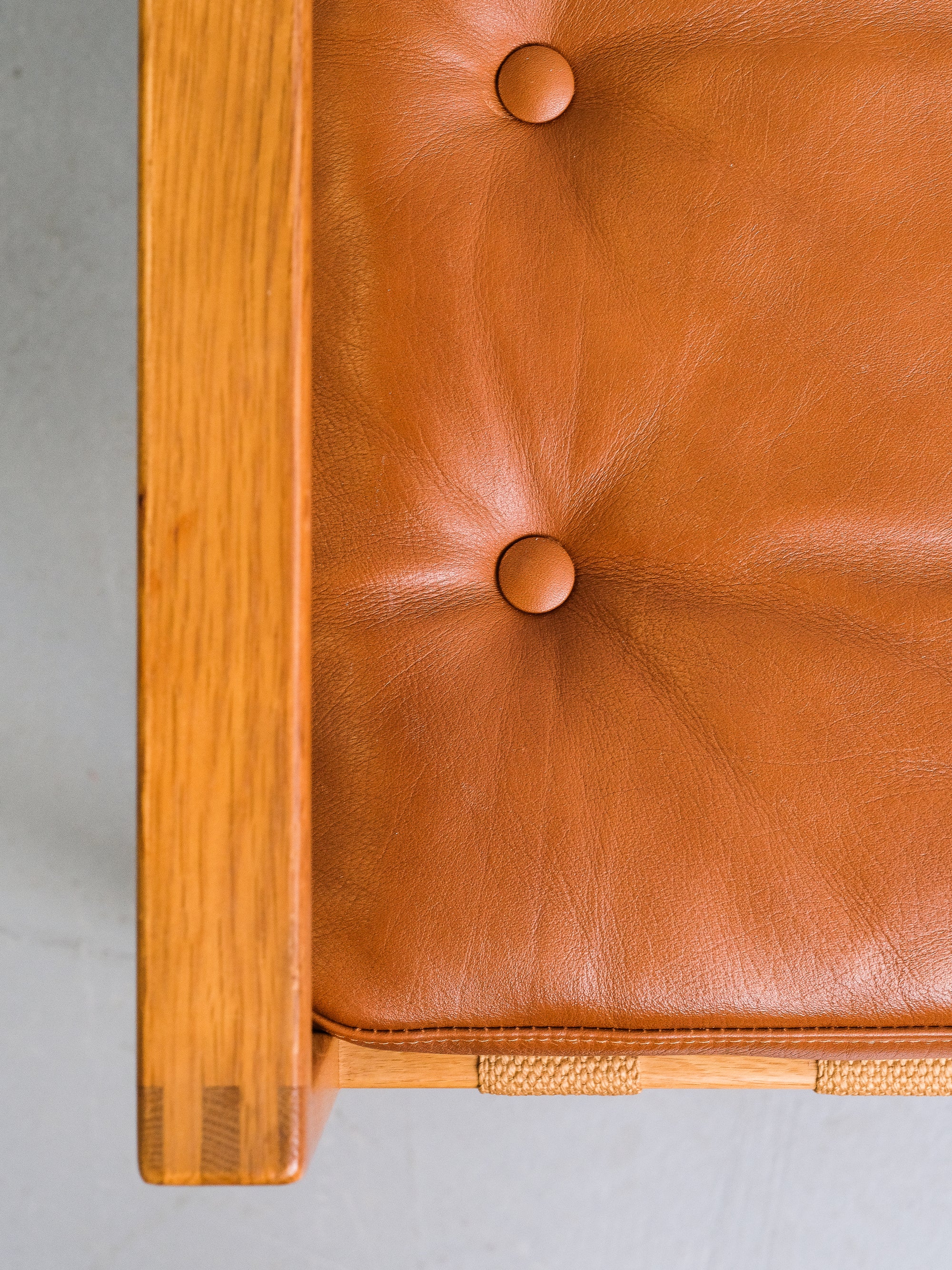 Oak Side Table with Rattan Basket, Design Bertil Fridhagen, Bodafors, Sweden, 1960s