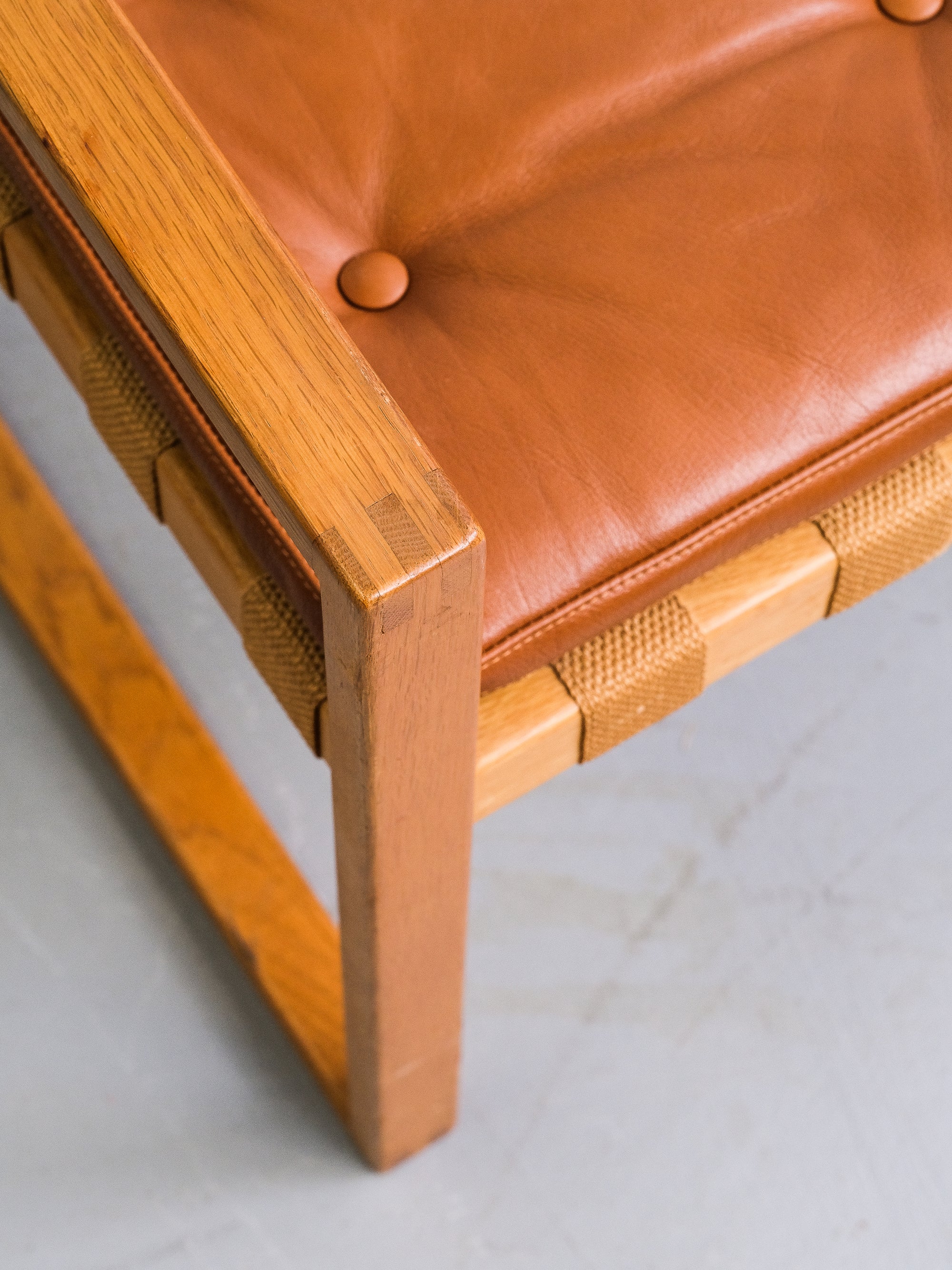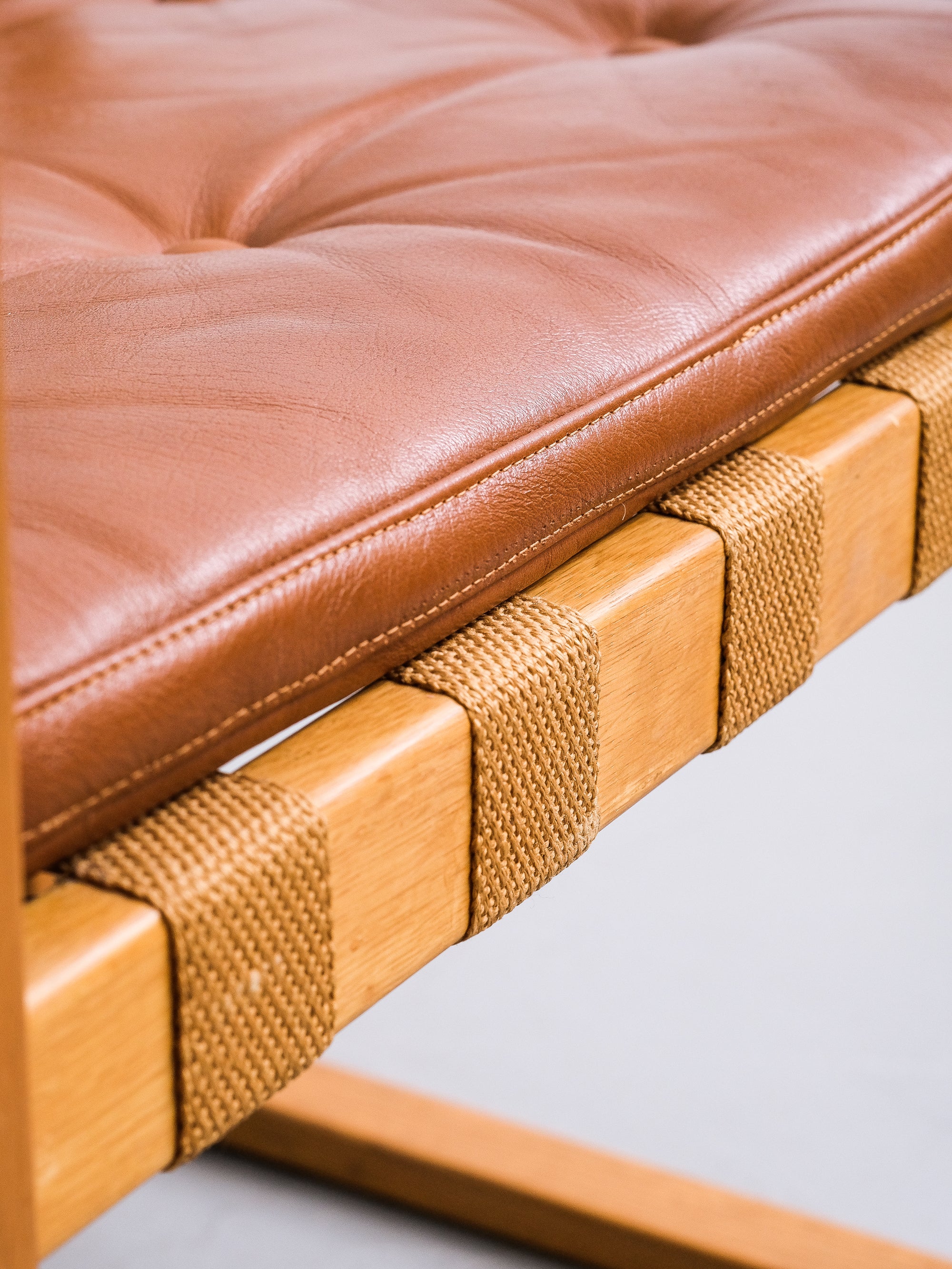 'Kurva' Lounge Chair in Leather by Yngve Ekström, Sweden, 1950s